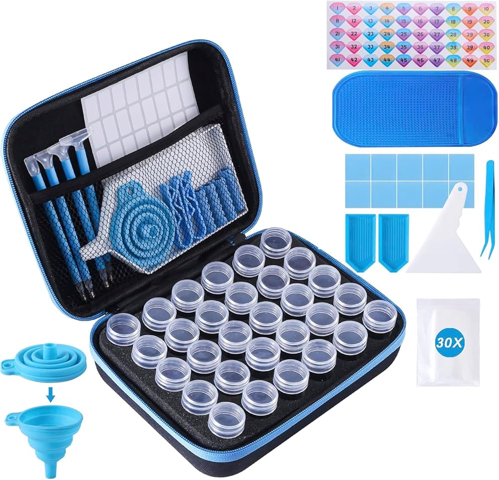 سعة كبيرة ومتعددة الوظائف: هناك 30 فتحة تخزين الماس لتعبئة الماس وطلاء ألوان ونماذج مختلفة من الخرز. يمكنه أيضًا تخزين العديد من العناصر الصغيرة مثل الحلقات والقلائد والترتر وما إلى ذلك
