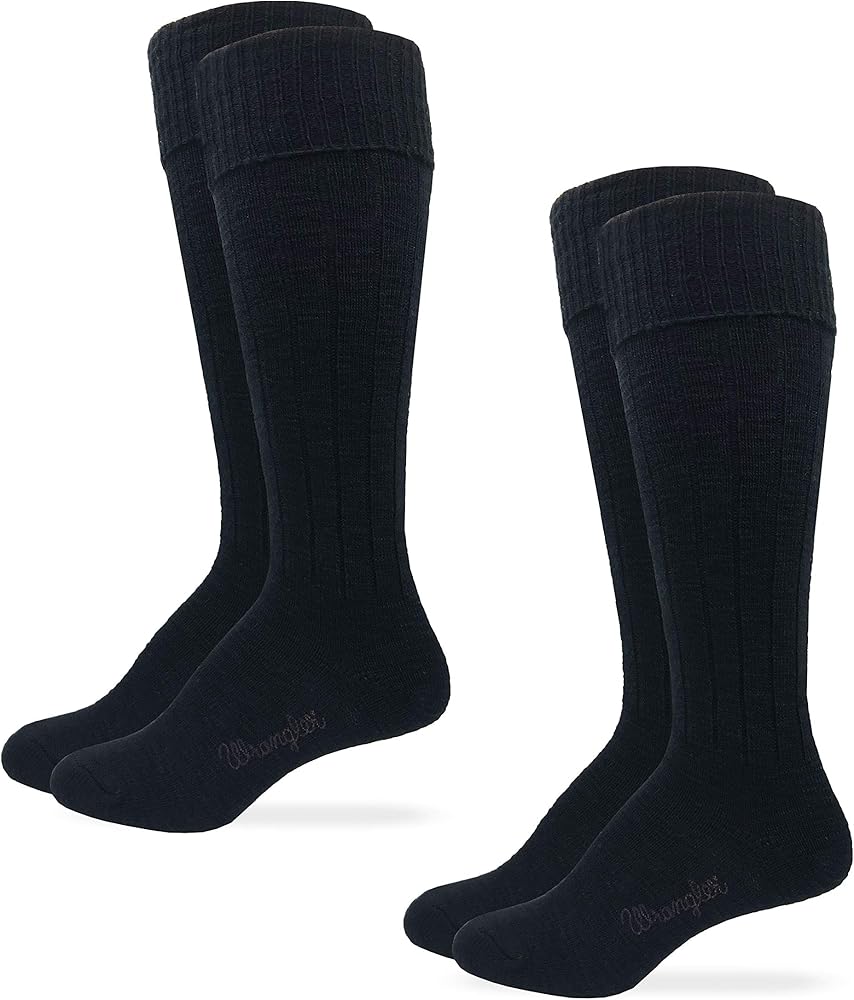 Wrangler Womens Knee High Turn Cuff Top Boot Socks 2 Pair Pack features premium knit rayon socks that offer smooth softness and comfort all day long. Ribbed stay up top and leg provides a secure and comfortable fit helping socks stay up for all day wear. High quality rayon yarn delivers breathability allowing your feet to stay cool during extended wear. Wear these on the saddle, around the barn, and on the town these socks can do it all.