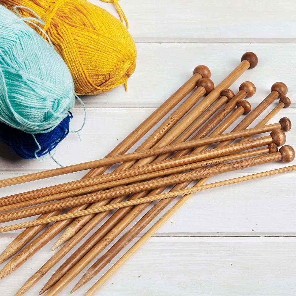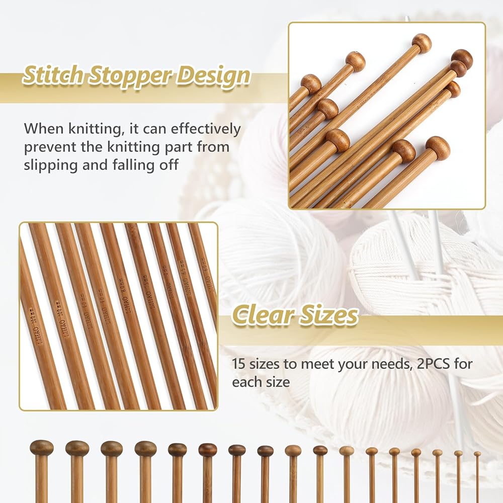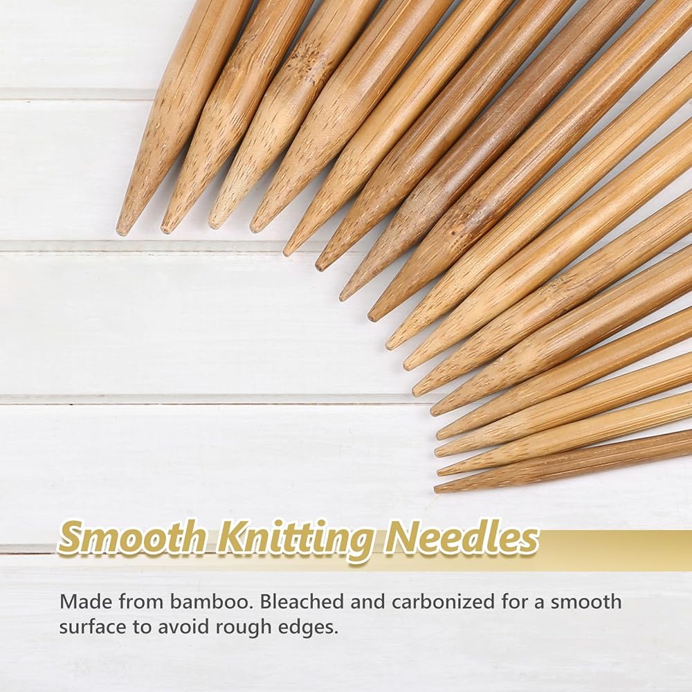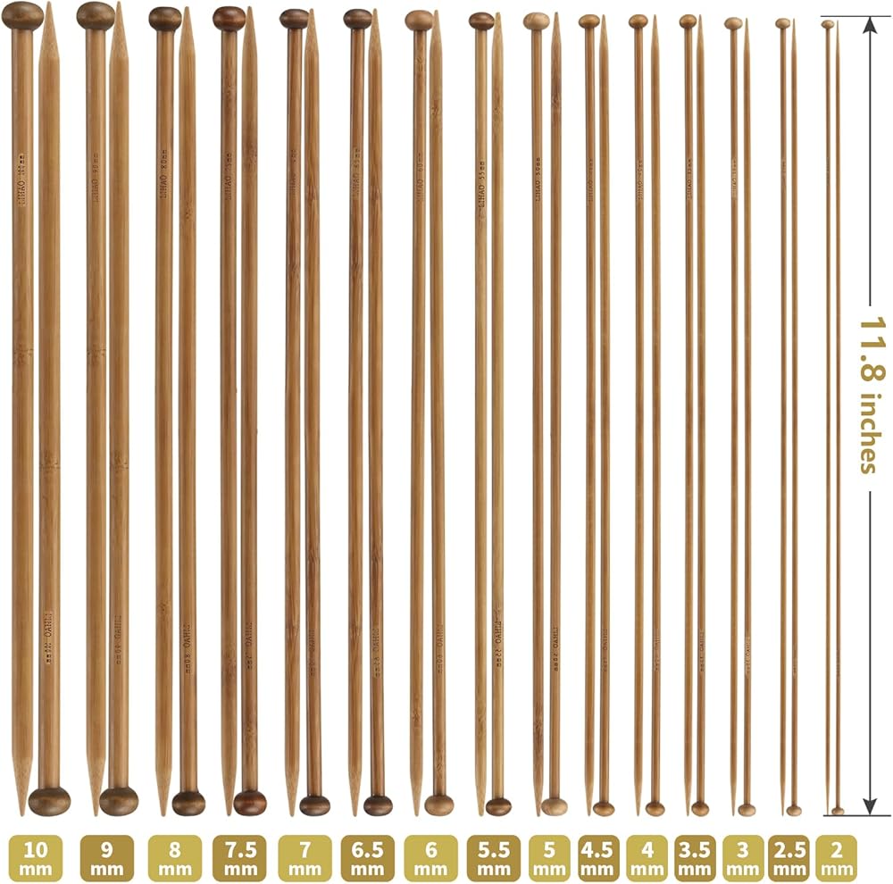 • Knitting Needles Set - Package includes 15 pairs single pointed bamboo knitting needles in brown color. The length of knitting needles is 12 inch (30 cm)