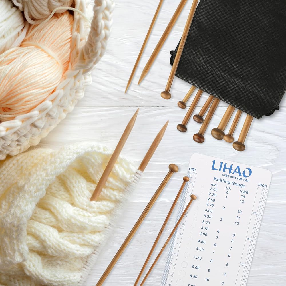 LIHAO 30pcs Bamboo Knitting Needles Set, Wooden Knitting Needles, Knitting Kit Accessories for Beginners Handmade, Single Pointed From 2.0mm-10.0mm