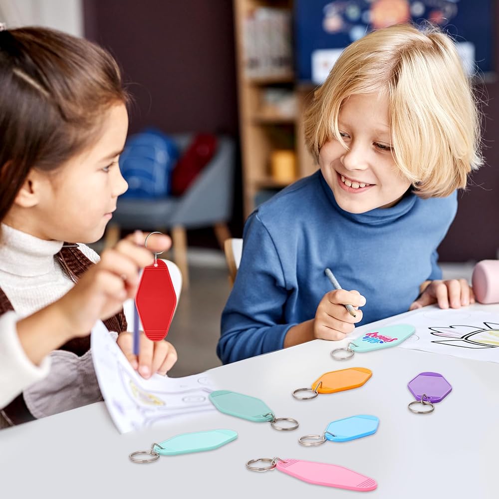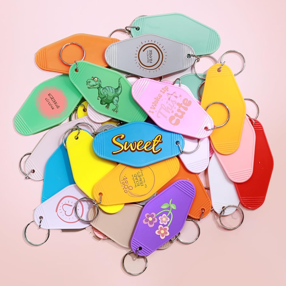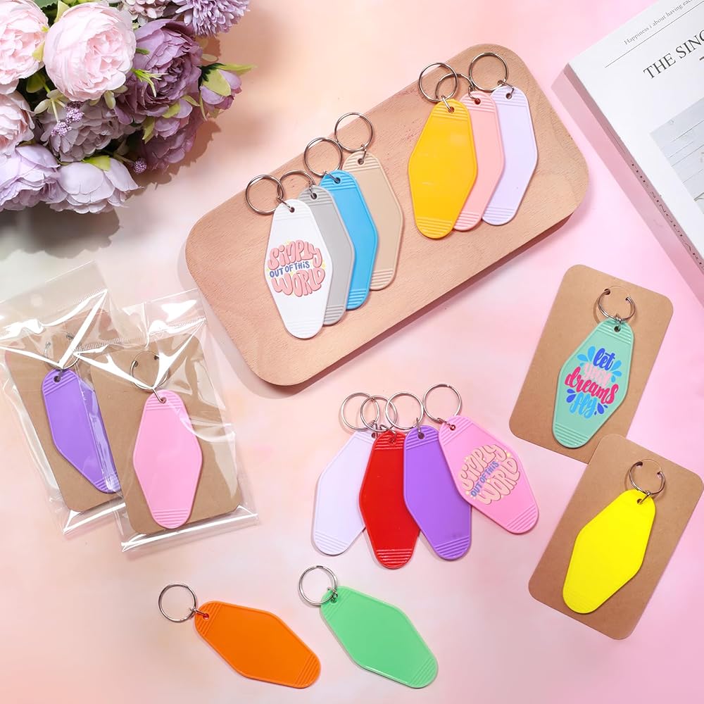 It's fun to vintage motel keychain blanks as gift. Our blank key tags are suitable for drawing, engraving and sticking stickers. You can print your personalize designs, memorable photos, words, numbers, arts, crafts, branding or any vinyl project to create own keychain making supplies