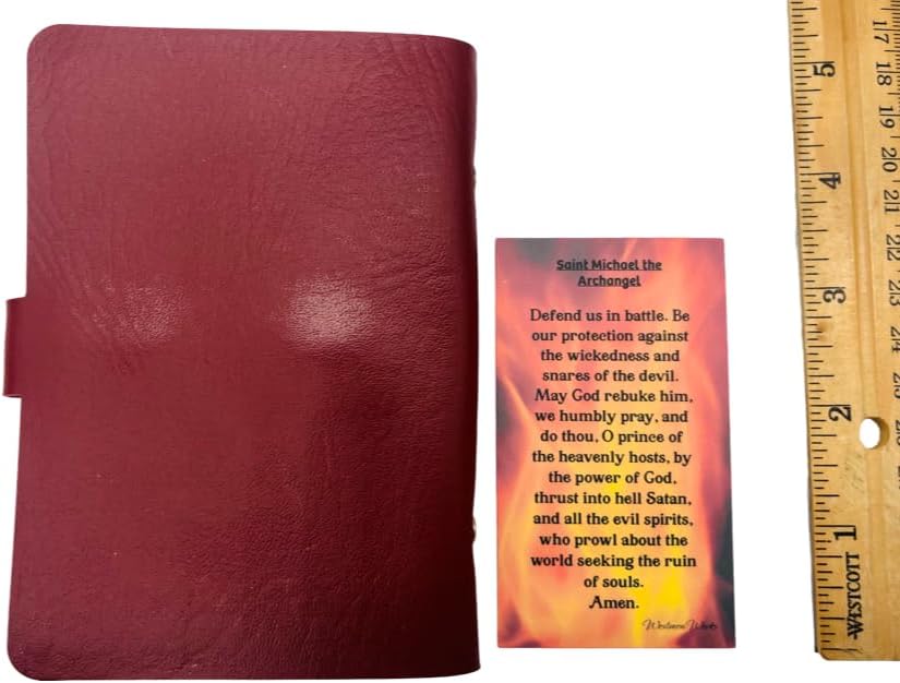 Nurture your faith and keep your treasured collection organized with our Divine Protection Holy Card Holder. This beautifully crafted burgundy booklet features a golden cross and 'Holy Cards' embossed on the cover, offering a dignified sanctuary for your holy cards. Including a powerful Saint Michael prayer card, this set becomes a source of daily inspiration and a personal fortress against adversity. With 20 clear sleeves, it provides ample space to preserve and cherish your holy card collection, making it an essential item for any devotee.