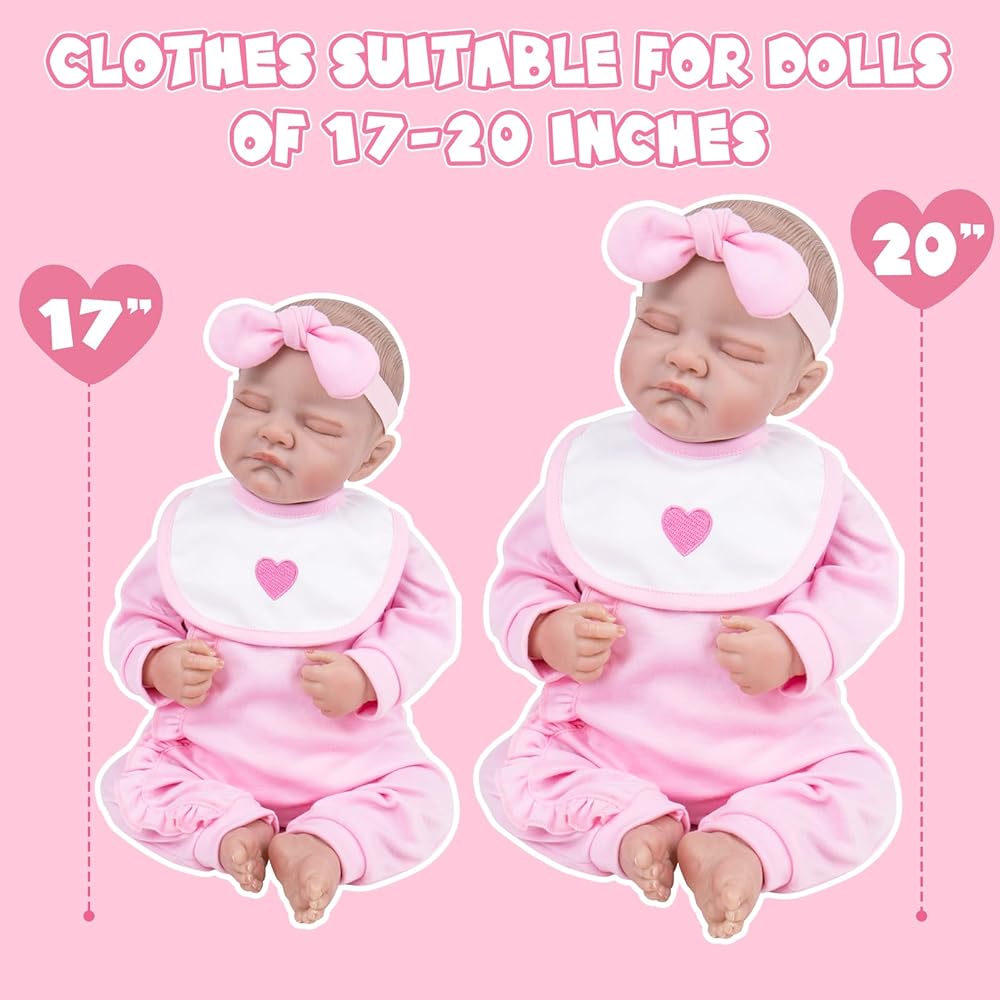 قد يكون من السهل وضع مجموعة ملابس ملابس Baby Doll Setting وإقلاعها. يمنح القبعة والقبعة طرقًا أكثر لارتداء دمية طفلك. أكثر متعة من ألعاب الحشرجة ولعب البطانية. مجموعة ملابس الدمية مناسبة لـ 17-20 دمية الطفل بوصة ، وهي مفيدة لتطوير خيال الأطفال وإبداعهم ، دعنا نبدأ باللباس.