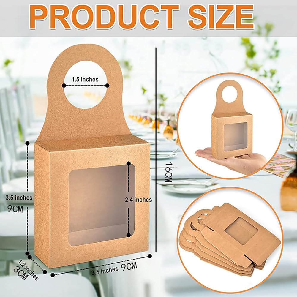 Measuring approximately 3.5 x 3.5 x 1.2 inches / 9 x 9 x 3 cm for your various uses Attend family and friend gatherings when you need this wine bottle gift hanging box.