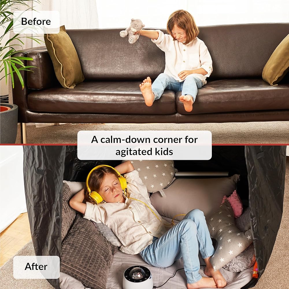سهلة الإعداد - قم بتوصيل الخيمة المحمولة بالسقف الخاص بك واتركها تتخلى عن الأرض لإعطاء طفلك أو طفل صغير مخبأًا مهدئًا فوريًا. مثالي للأوقات في المنزل أو في الفصل الدراسي ، عندما يتم تحفيزهم بشكل مفرط ويحتاجون إلى استراحة ولكن لا توجد غرف منفصلة حيث يمكنهم التراجع إليها.