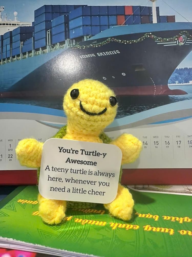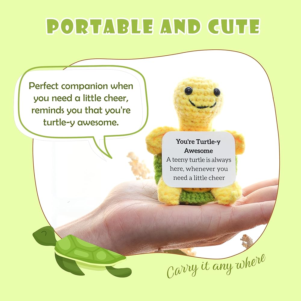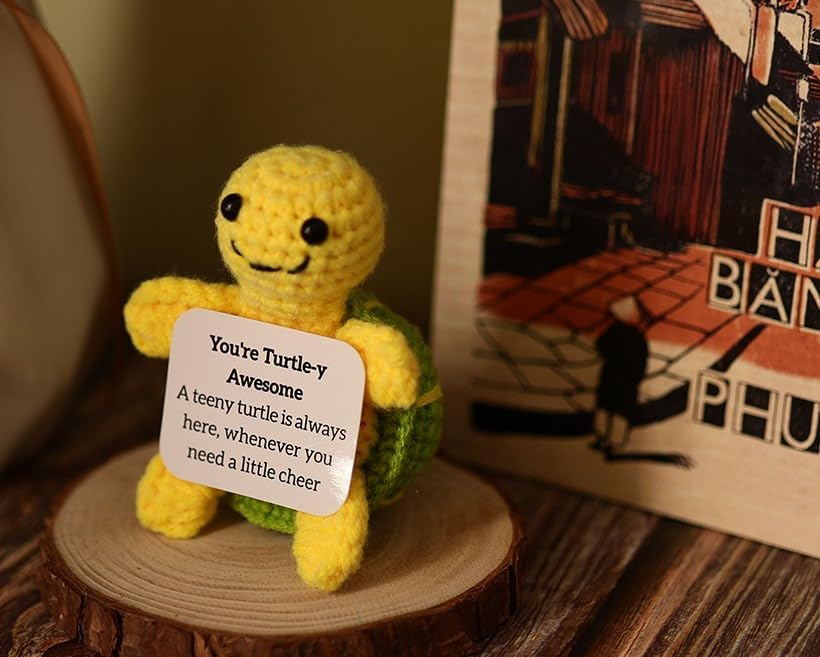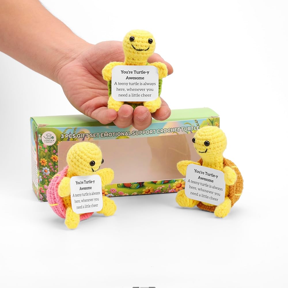 Mô tả sản phẩm: The Handmade Crochet Turtle is a charming and thoughtful emotional support gift, designed to bring positivity and motivation to its owner. Skillfully handcrafted by talented Vietnamese artisans, this adorable turtle is made from soft, comfortable yarn and features a cute design with compact dimensions (2.3 x 1.4 x 3.5 inches), making it easy to carry wherever you go. Each turtle is not just a crochet animal, but a positive companion, delivering a motivational message that helps brighten anyone's day. This unique, handcrafted product is perfect for fans of knitted or mini crochet animals who appreciate the warmth and joy of handmade gifts. It's an ideal choice for people seeking funny, inspirational, or emotional support gifts, especially for those who love turtles. Whether it's for a birthday, Christmas, or any special occasion, this positive crochet turtle is a versatile present that works well for people of all ages. It's perfect for anyone who needs a little boost or a reminder of positivity in their life. Beyond being a thoughtful gift, the turtle also doubles as a delightful decorative item. It's ideal for placing on desks, study tables, bookshelves, or even in cars, providing a constant source of inspiration and good vibes. The crochet turtle is not just a cute collectible; it's a meaningful item that spreads warmth, joy, and motivation every time it's seen. Whether for a loved one, a friend, or even yourself, this turtle brings a smile to anyone who values positivity and creativity.