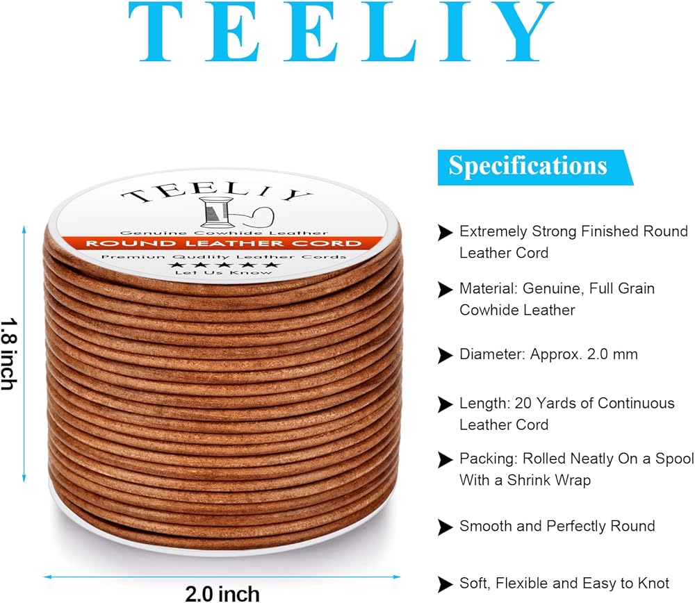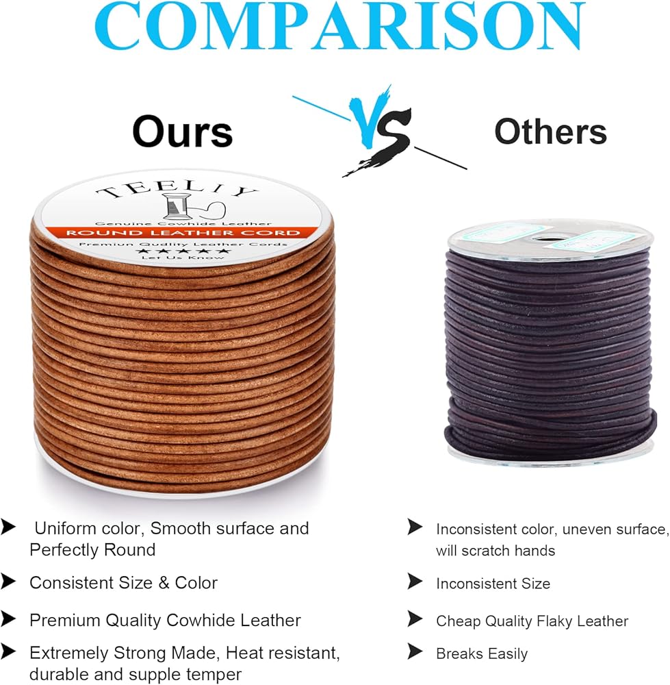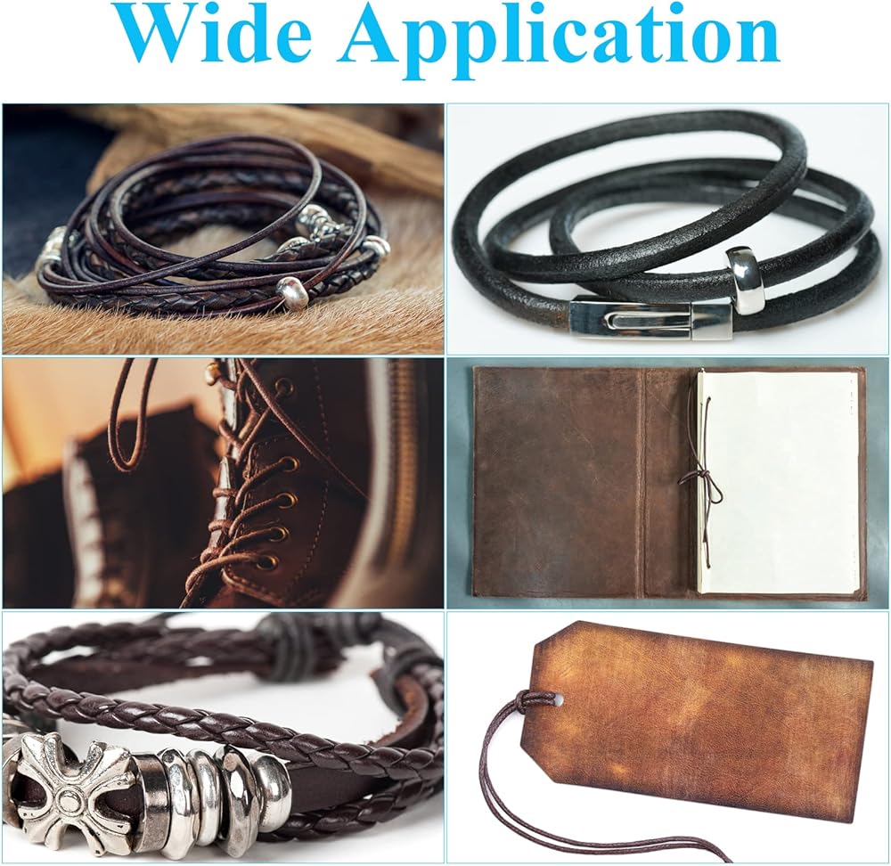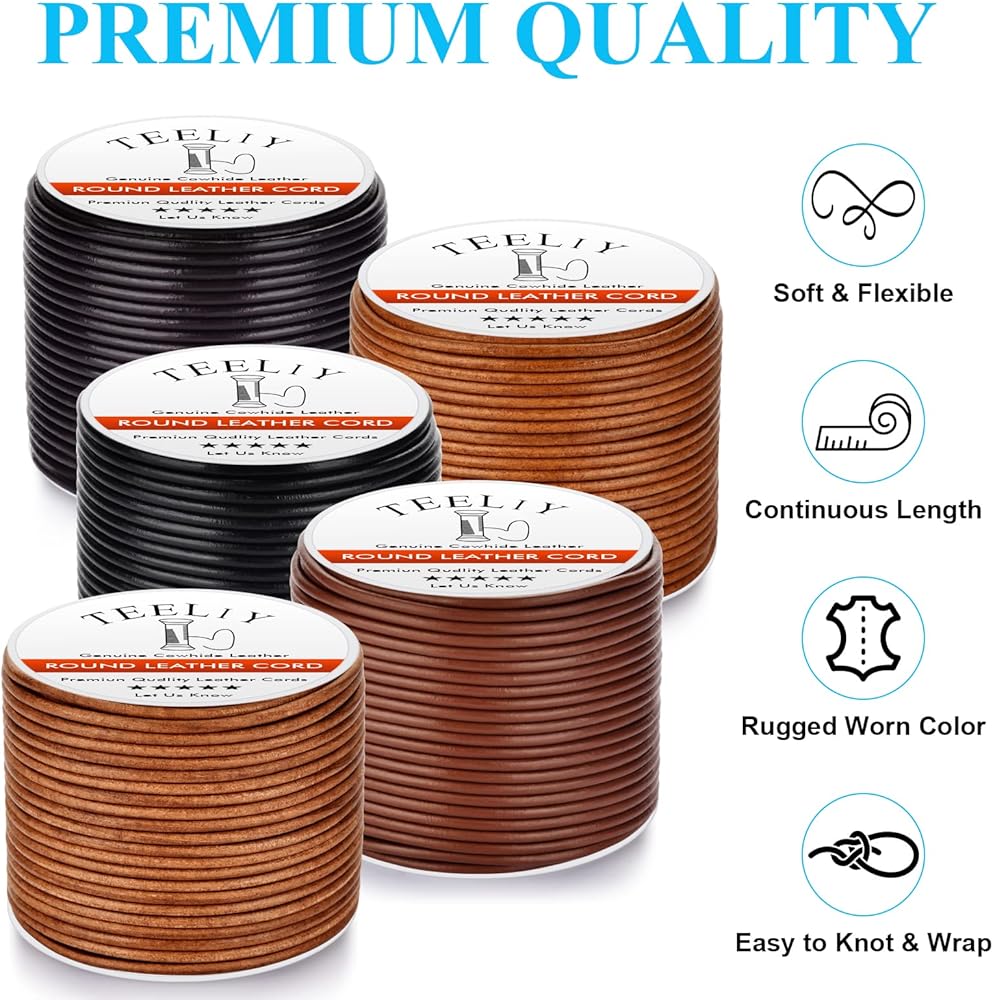 【Premium Quality】Extremely strong finished round leather cord made using US cowhide, Continuous Leather Cord, Uniform color, Smooth surface and Perfectly Round, Colorfast and non-bleeding; Well applied shiny dyed color coating that so easy to knot.