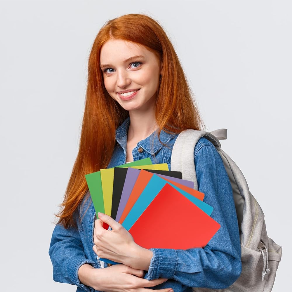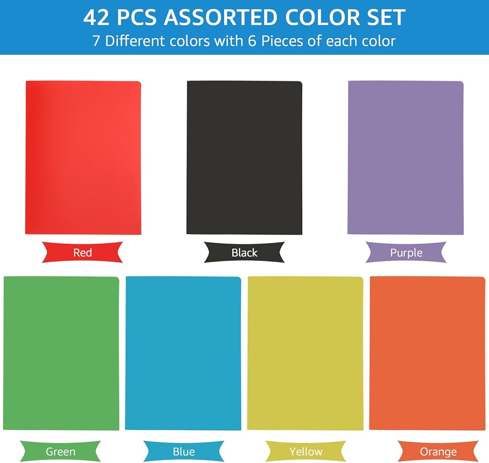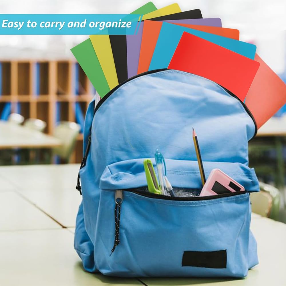 【7 مجلد ملف ملونة】 ستحصل على المجلدات البلاستيكية 42 ٪ مع بطاقات عمل فارغة 42 ٪. 7 ألوان متنوعة: الأحمر والأصفر والأخضر والأزرق والأسود والأرجواني والبرتقالي ، رمز ملون بسهولة وثيقك لمساعدتك في التنظيم. يبلغ سمك المجلدات 2 من الجيب 0.35 مم ويقيس 11.4 "× 9.3" ، ويحمل حوالي 50 ورقة من ورق A4