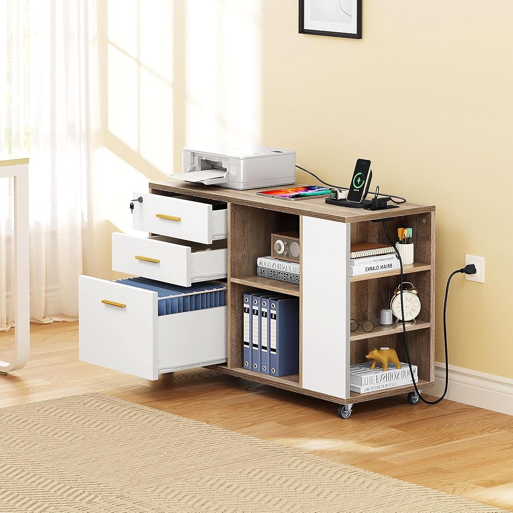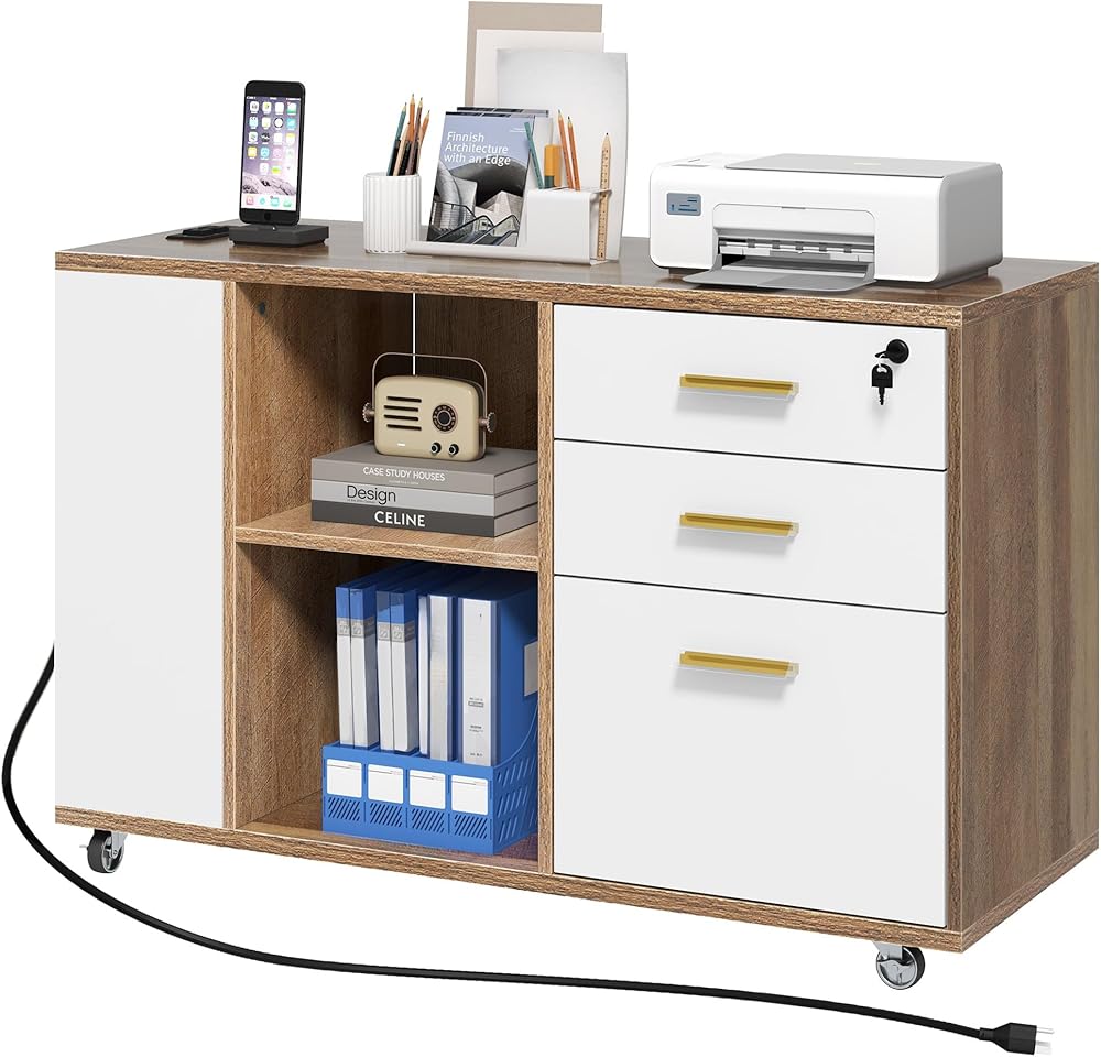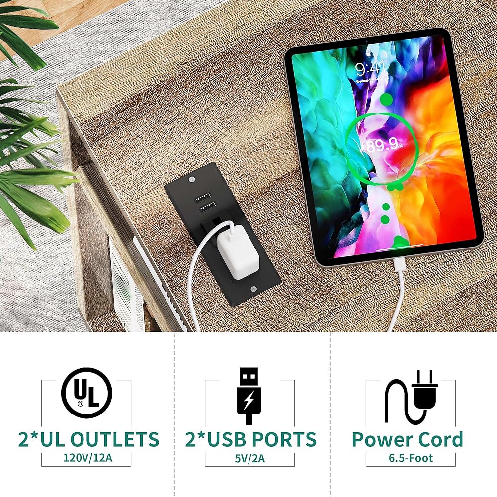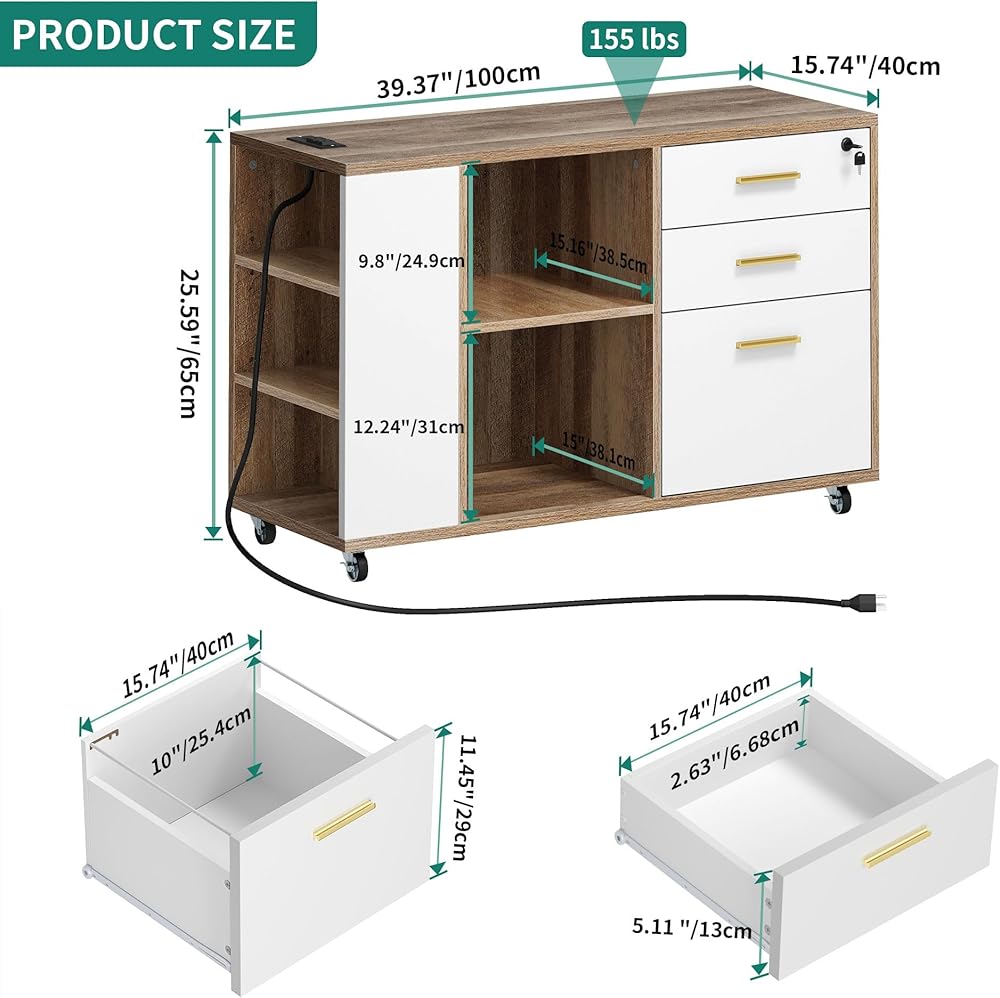 اجعل الشحن أسهل: مع منافذ مدرجة في 2 UL ومنفذيين USB وسلك طاقة 6.5 قدم في متناول يدك ، يمكن أن تتقاضى خزانة الملفات الخشبية طابعة أو مصباح أو هاتف أو وسادة أو كمبيوتر محمول في وقت واحد أثناء العمل أو الدراسة.