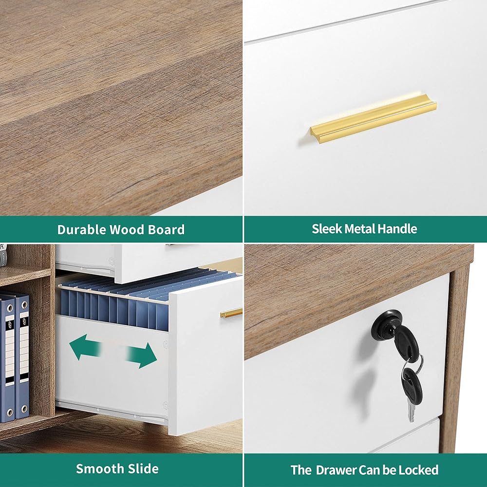 مساحة عمل واسعة: قم بزيادة إنتاجيتك باستخدام سطح مكتب سخية للطابعة أو الماسح الضوئي. تم تصميم خزانة الملفات الجانبية هذه للحفاظ على محطة العمل الخاصة بك وتعزيز الكفاءة ، مما يضمن أن تكون الضروريات في متناول اليد.