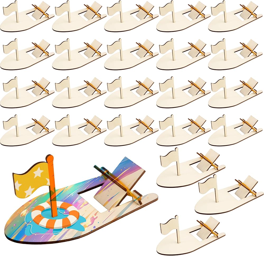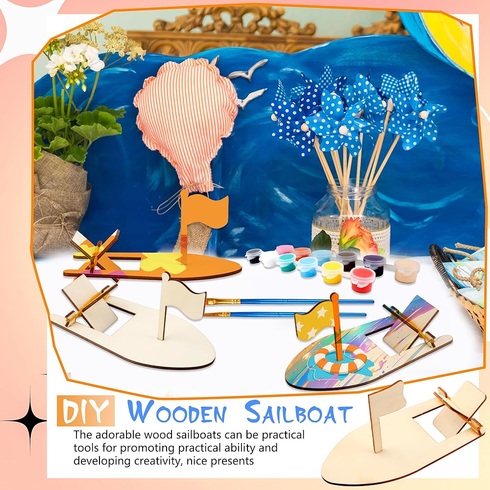 Haconba 24 Pcs DIY Wooden Sailboat Unfinished Wood Boat Wooden Craft Sailboat to Paint for School Family DIY Craft Activities