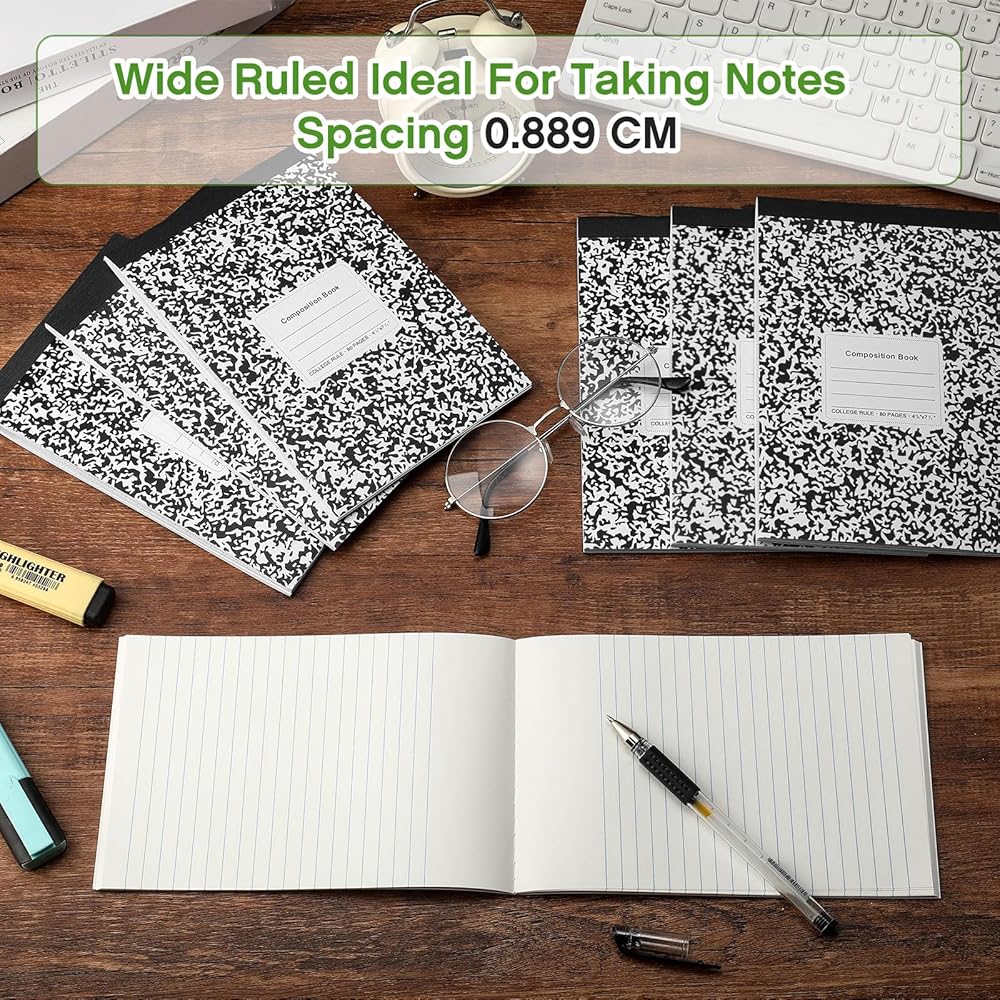 Compact Design: our college ruled composition notebooks are approximately 4-7 / 8 x 7-1 / 2 inches in size, with a spacing of 0.889 cm / 0.35 inch, and the inner page weight is 70 grams, the paper is thick and not easy to penetrate ink; The half-size design makes the book more portable and does not waste space