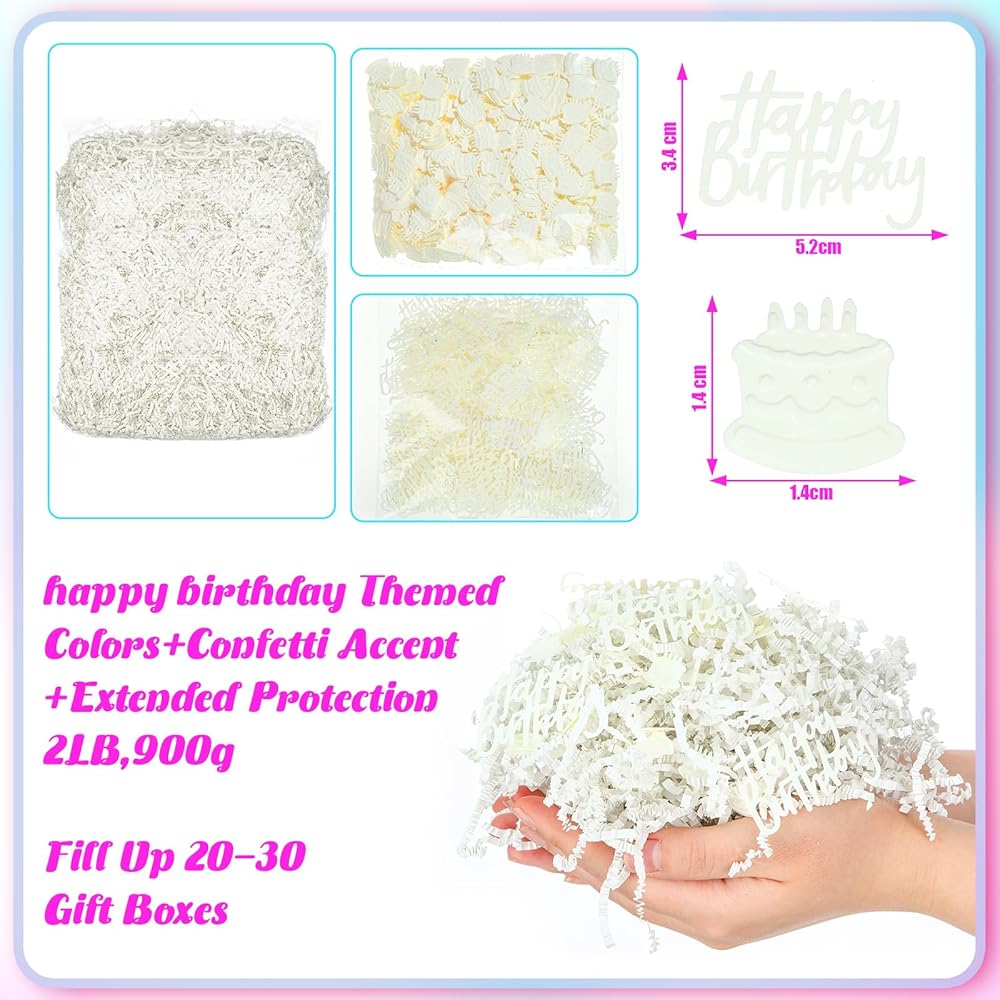 Presenting gifts is never the same with this birthday crinkle paper. Ideal for birthday gift boxes, gift baskets, and corporate gift boxes, this shredded paper filler allows you to add a personal touch, attract more attention, and make your gifts even more memorable.