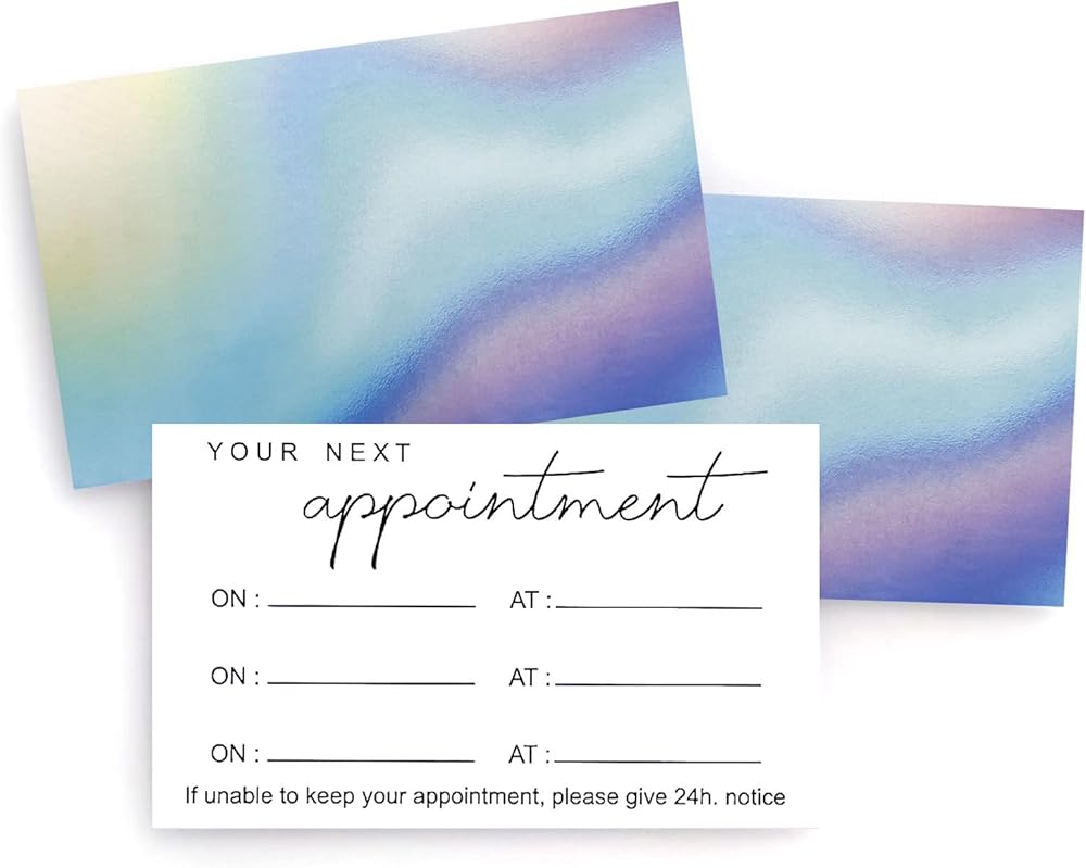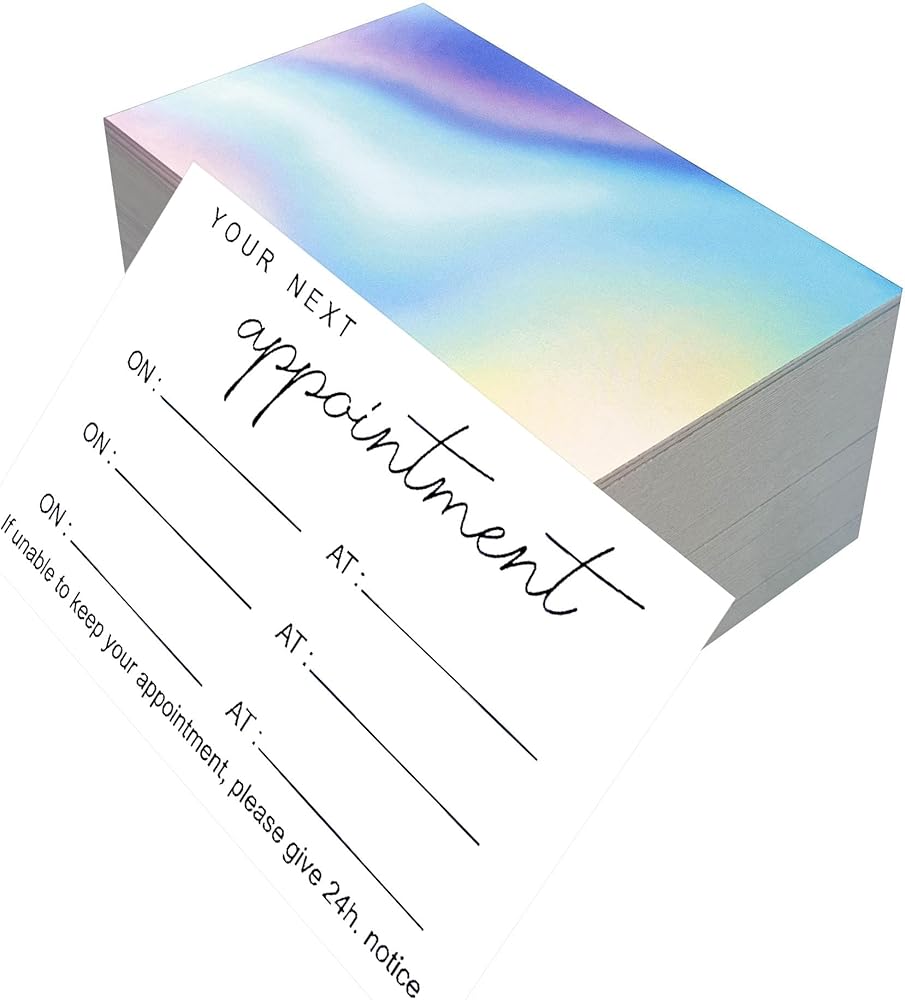 Printed on 300gsm copperplate paper, these multi-slot appointment cards come in a soothing rainbow design, size 2x3.5 inches, with a pack of 100 for extensive booking needs.