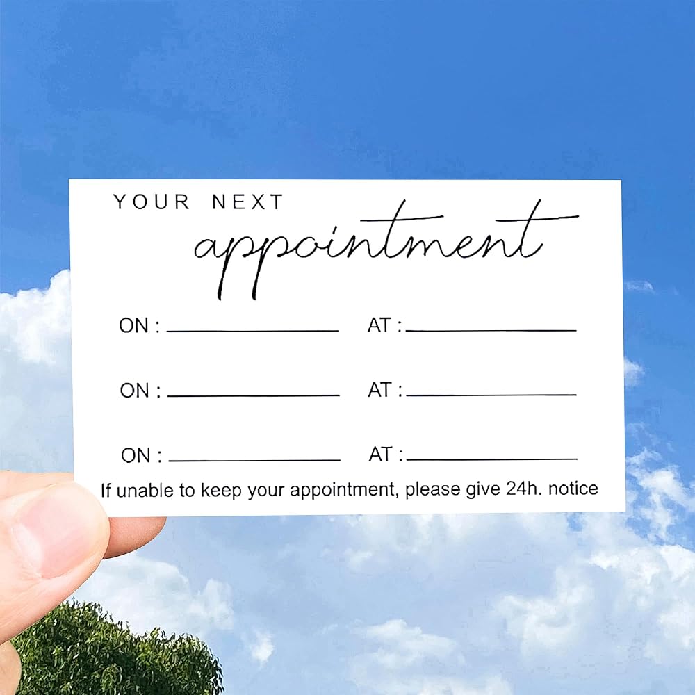 These cards offer a memorable take on the traditional appointment reminder, ensuring clients will notice and remember their upcoming commitments.