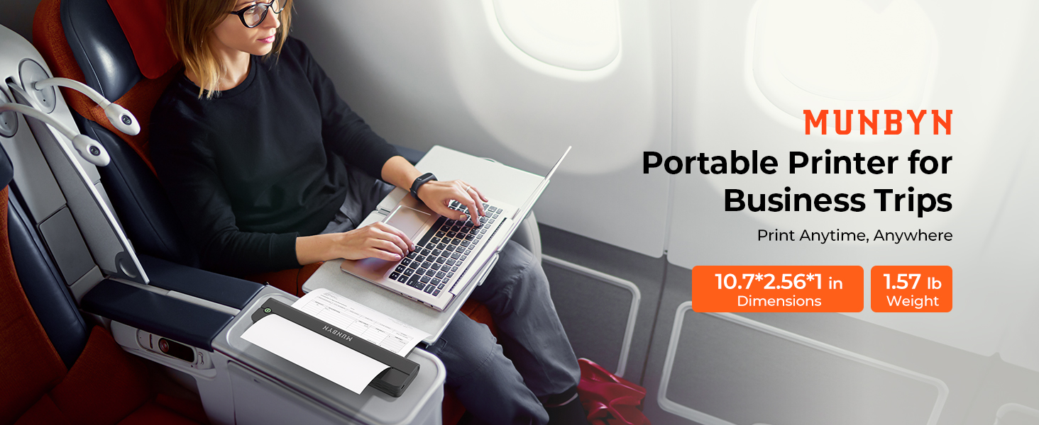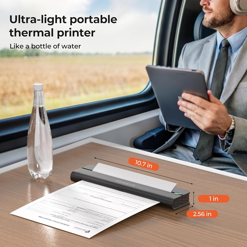 طابعات Munbyn Portable Wireless for Travel ITP02 ، Portable Printer Bluetooth ، دعم 8.5 "x11" و A4 الحرارية ، متوافقة مع Android و iOS & Laperp ، طابعة صغيرة للمكتب ، المدرسة (الأسود)