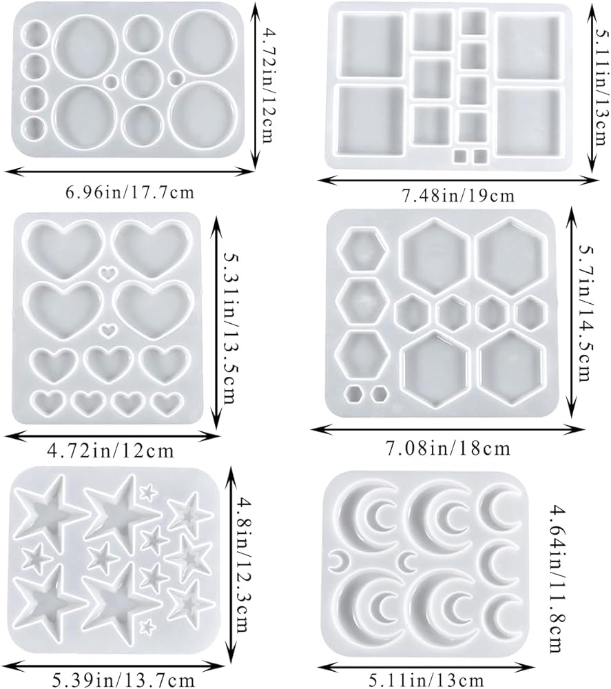 • 【Package Included】: You will receive 6 silicone molds set, these molds set include hexagonal, circular, crescent, pentagram, square, and heart shapes, with 4 sizes for each shape