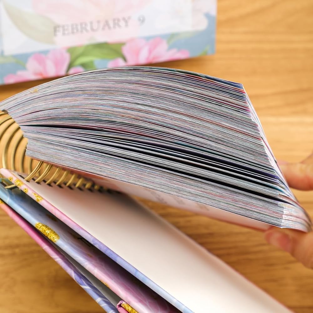 🗓️100 GSM HIGH QUALITY THICK PAPER - 2025 Inspirational daily calendar paper is designed to prevent from feathering and seepage, made from acid-free paper, which is resistant to air and light damage, thus maximizing its longevity, Sturdy base easel, gift box and watercolor and flower design to promote relaxation and tranquility, Perfect for home, work office and school.