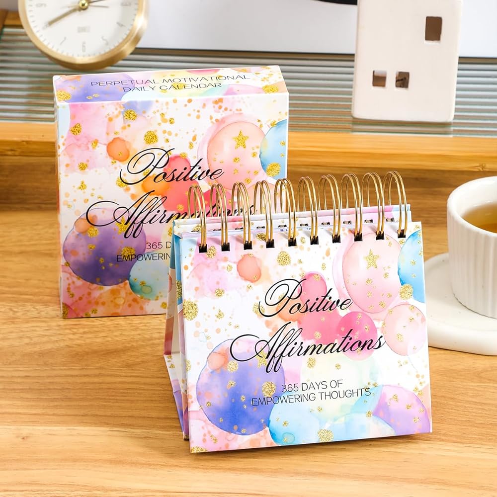 2025 Daily Desk Calendar, Standing Flip Perpetual Desk Calendar with Inspirational Quotes - Page a Day Positive Daily Affirmations - Desk Decor for Office School home, Inspirational Gifts, Desk Accessories