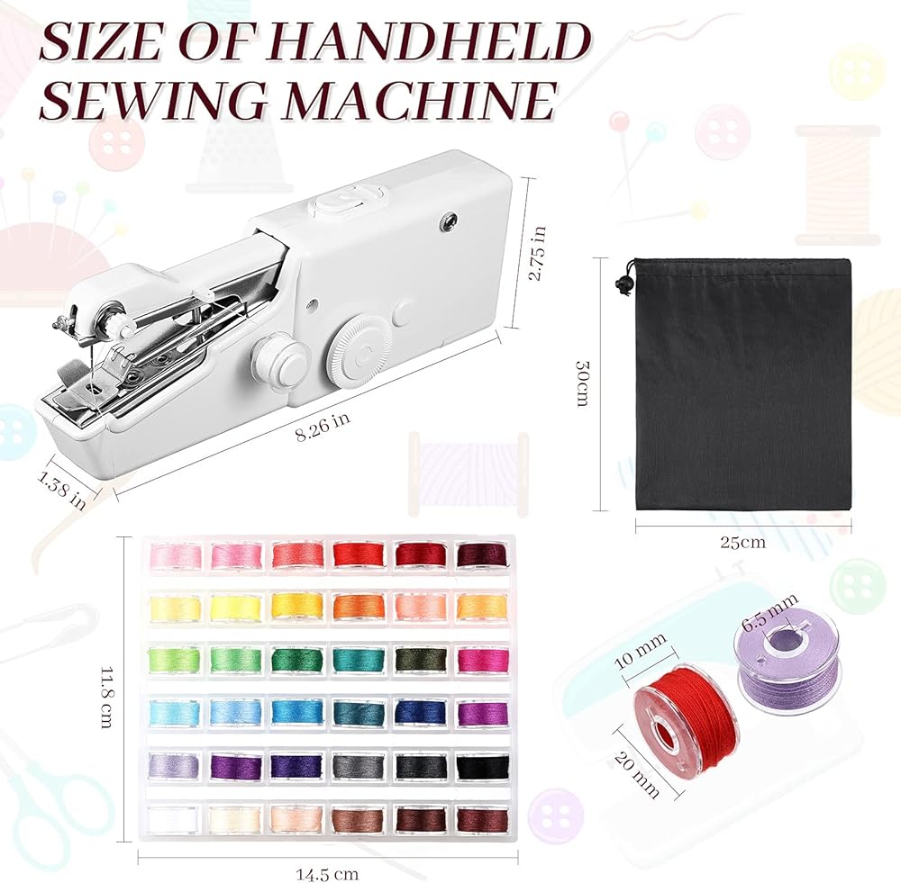 • أحجام المعلومات: آلة الخياطة المحمولة هي تقريبا. 20. إنها بأحجام مناسبة لكي تعمل بيد واحدة ولن تشغل مساحة كبيرة جدًا