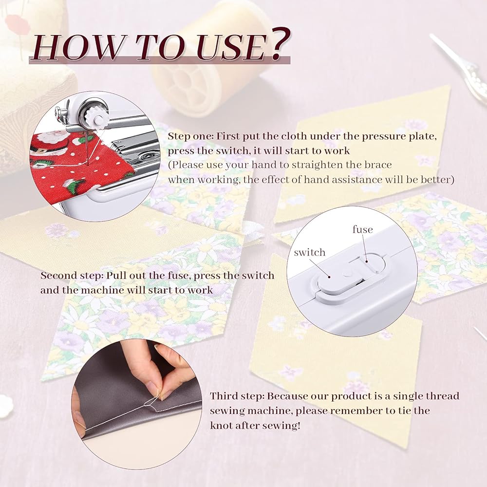 • من السهل التشغيل: من السهل تشغيل آلة الخياطة المحمولة المصغرة هذه ، مع مواءمة الحافة المسطحة والتحرك تلقائيًا ، والتي تعد مريحة للتحكم ، بحيث يمكن للمبتدئين من ذوي الخبرة صنع بعض الحرف اليدوية DIY بسهولة وفقًا لاحتياجاتك ؛ يمكنك أيضًا تعليم الأشخاص من حولك استخدام آلة الخياطة ، لأن العملية سهلة الإتقان