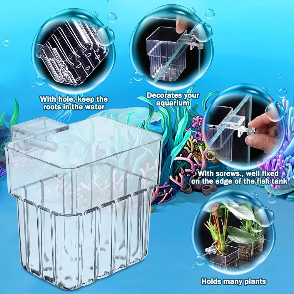 Easy To Install:The acrylic aquarium plant holder is easy to install on your aquarium or fish tank, just tighten the screws to fix it easily.