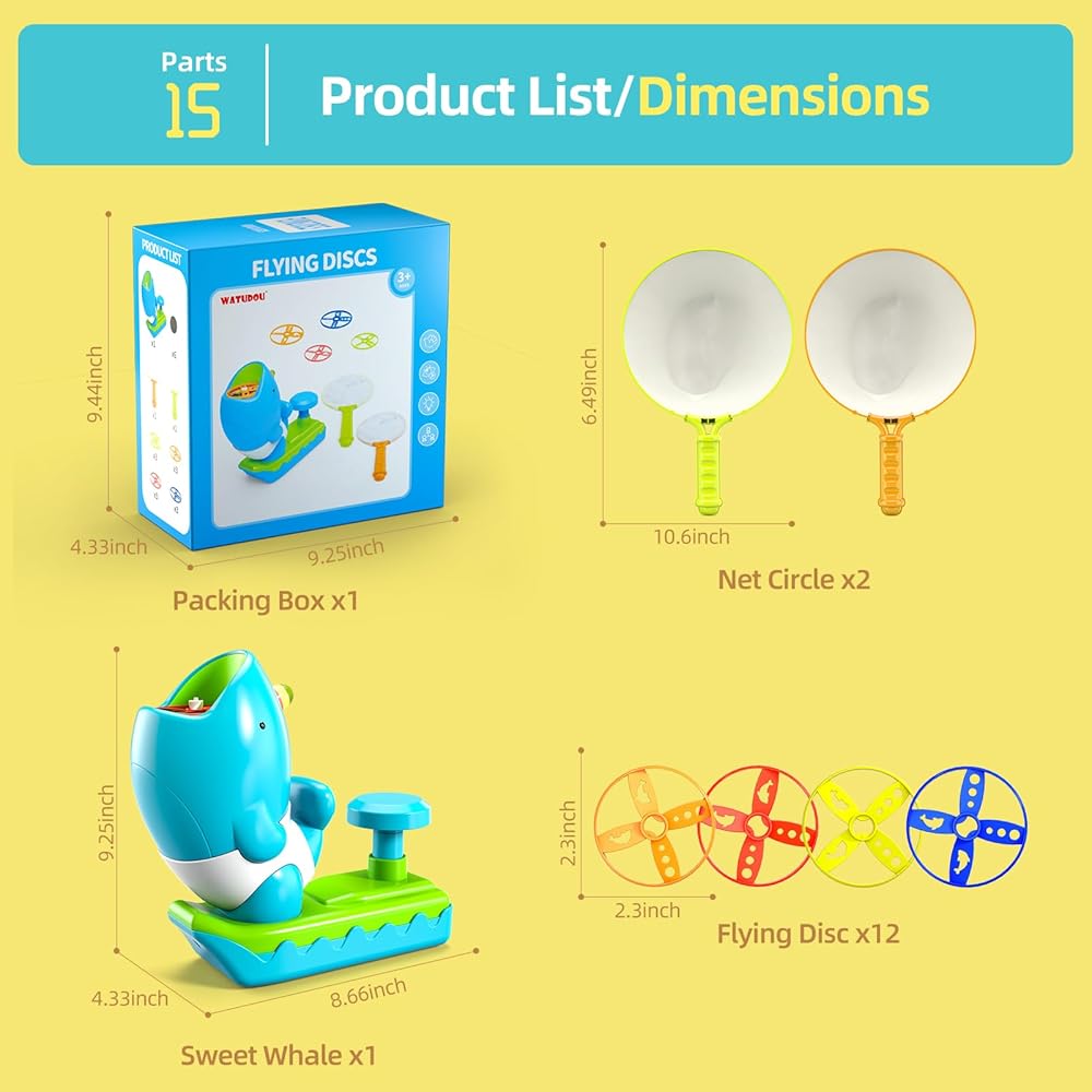 سهل الاستخدام: ما عليك سوى الضغط على الدواسة بلطف ، يطلق منفذ القاذفة على القرص الطائر في السماء (يمكن أن يضع 4). يتيح التصميم المبتكر لشبكات اللحاق بالأطفال التقاط الهواء في الهواء الطائر ، مما يضيف طبقة مثيرة من التحدي والمرح للعبة. كل صيد ناجح يملأهم بكل سرور ، وهذا النشاط المدير للتشغيل لا يملأ قلوبهم بالفرح فحسب ، بل يبقي أجسادهم لائقًا وقويًا! مناسبة لألعاب اللعبة الخارجية الخارجية للأطفال الصغار الذين تتراوح أعمارهم بين 3-5 4-8.
