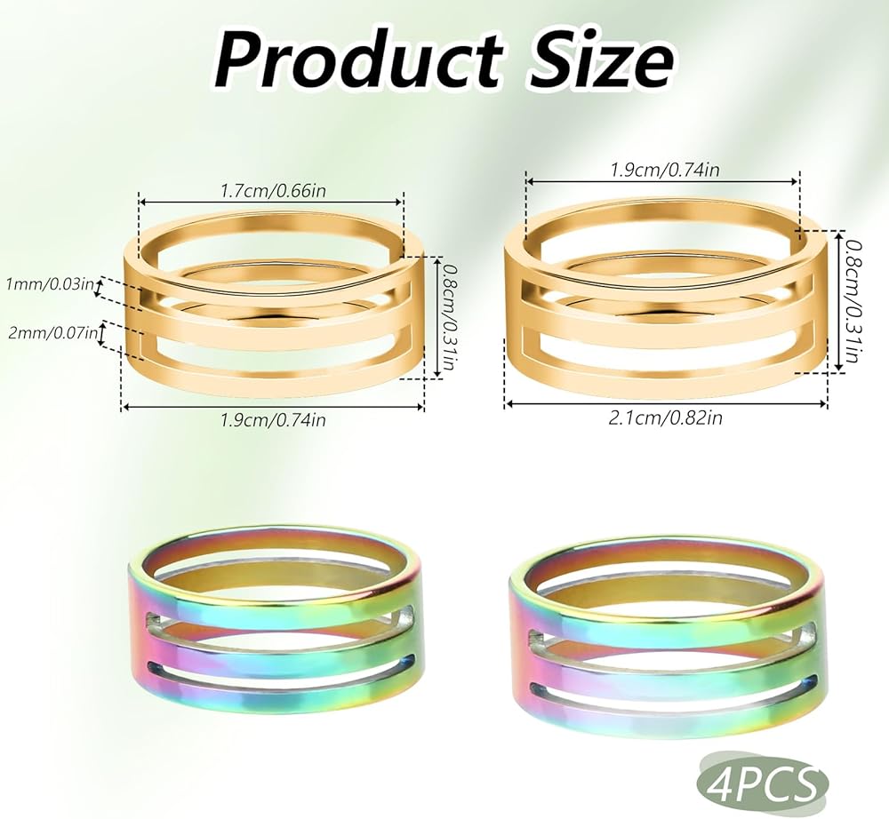 You will get: 4pcs jump rings opening tools, Gold, Colorful, 2pcs inner diameter of approximately 17 mm/0.67 inches, an outer diameter of approximately 19 mm/0.75 inches, 2pcs 2.1*0.8cm/0.83**0.31inch,Inner Diameter 1.9cm/0.75inch. There is an abundant quantity available to meet your daily replacement needs. The wide width of the jump rings opening tools allows you to handle various sizes of jump rings, providing convenience and saving you time