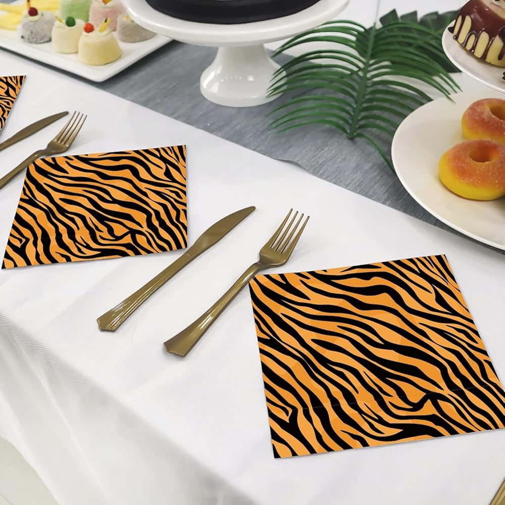 40PCS Tiger Paper Napkins Tiger Print Party Napkins Jungle Animals Tiger Napkins Tiger Birthday Party Farty Napkins Tiger Party Supplies Tiger Paper Paper Factip