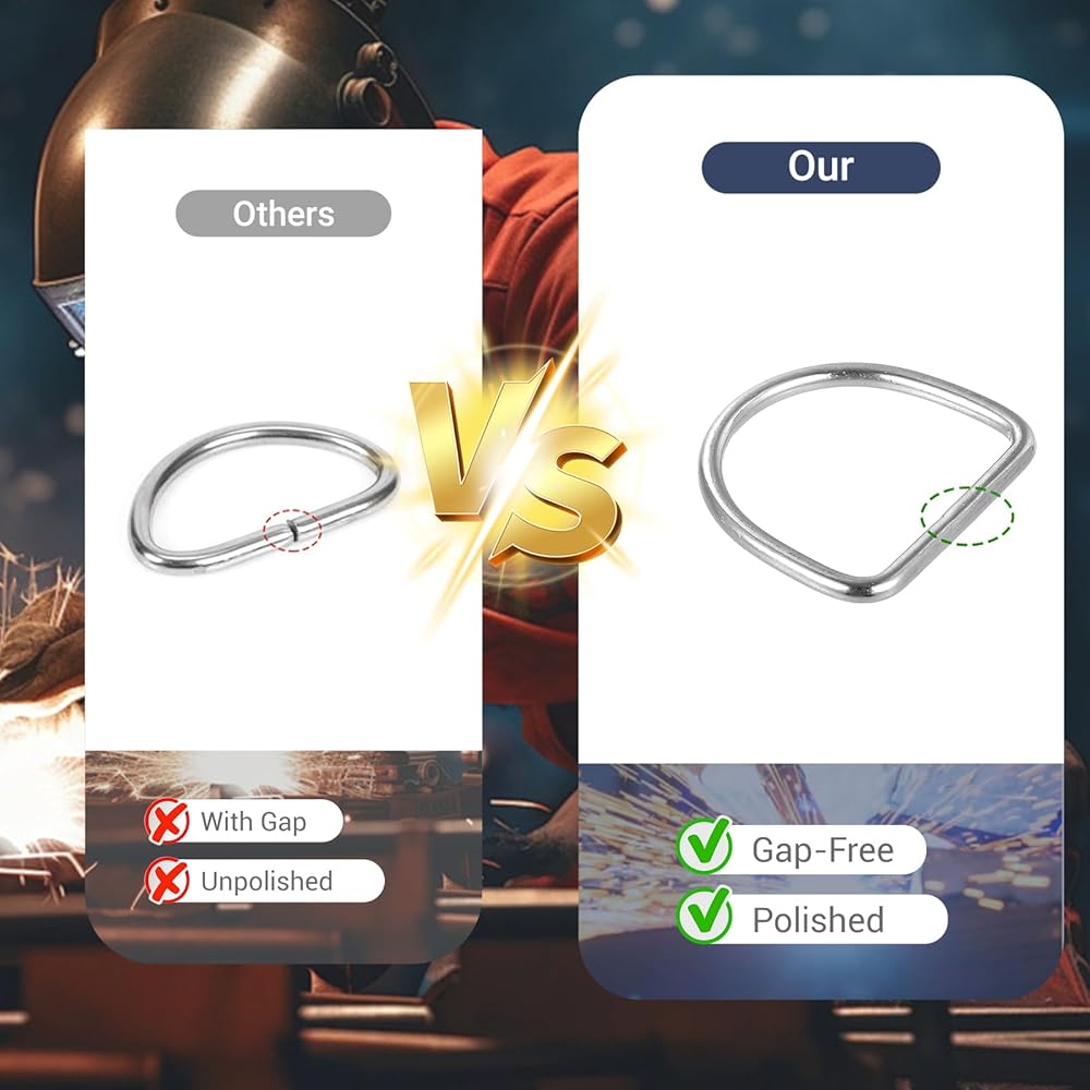 Seamless Welding: These Metal D Rings feature seamless welding with no gaps, making them ideal for DIY sewing hardware on webbing straps and ensuring a secure hold.