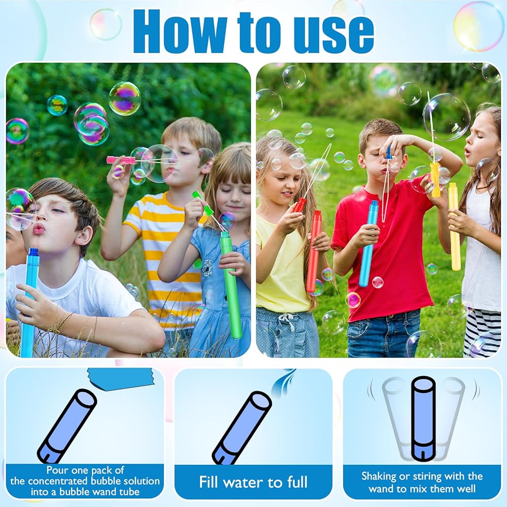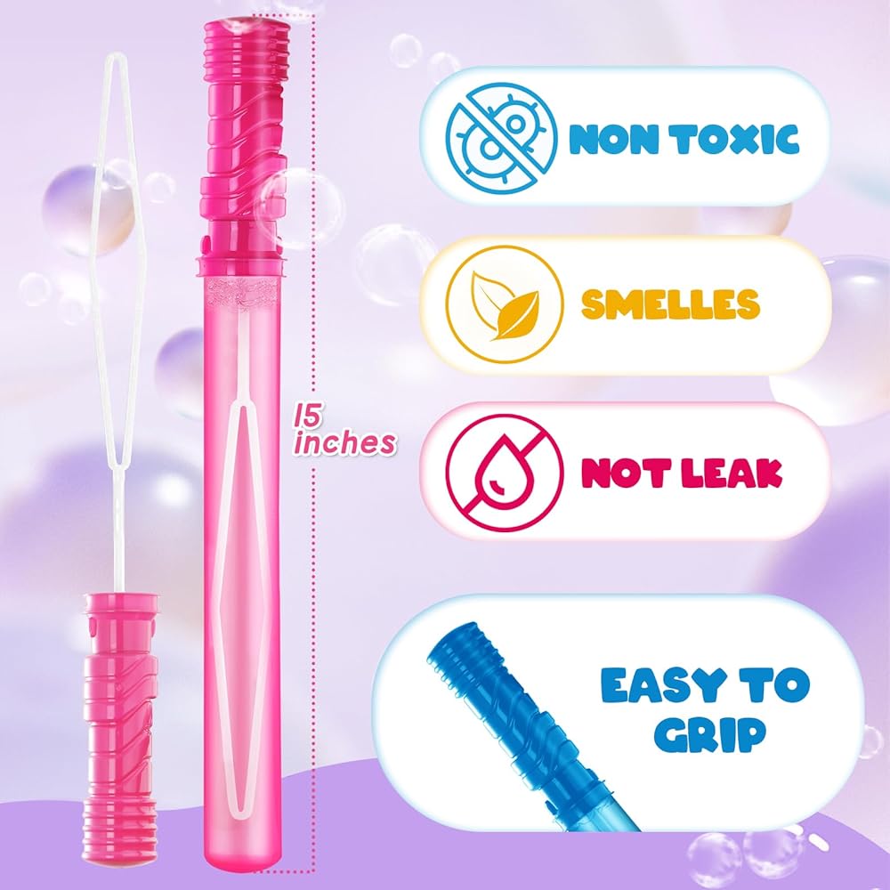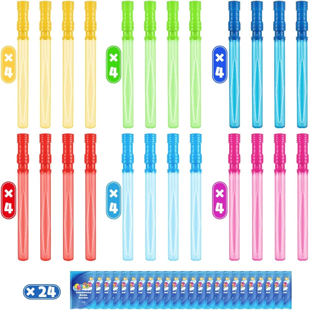 مجموعة الفقاعات ذات القيمة الفائقة: تضم فقاعاتنا للأطفال 24 صولجًا في 6 ألوان نابضة بالحياة - باللون الأصفر والأخضر والأزرق والوردي والأزرق الفاتح ، 4 لكل لون. على عكس مجموعات عصا الفقاعات الأخرى ، تأتي كل عصا فقاعة في هذه المجموعة مع عبوات من حلول حلول الفقاعات ، والتي تعد إضافات مثالية لحفلات أعياد الميلاد ومثالية كمستلزمات لحفلات الفقاعات.
