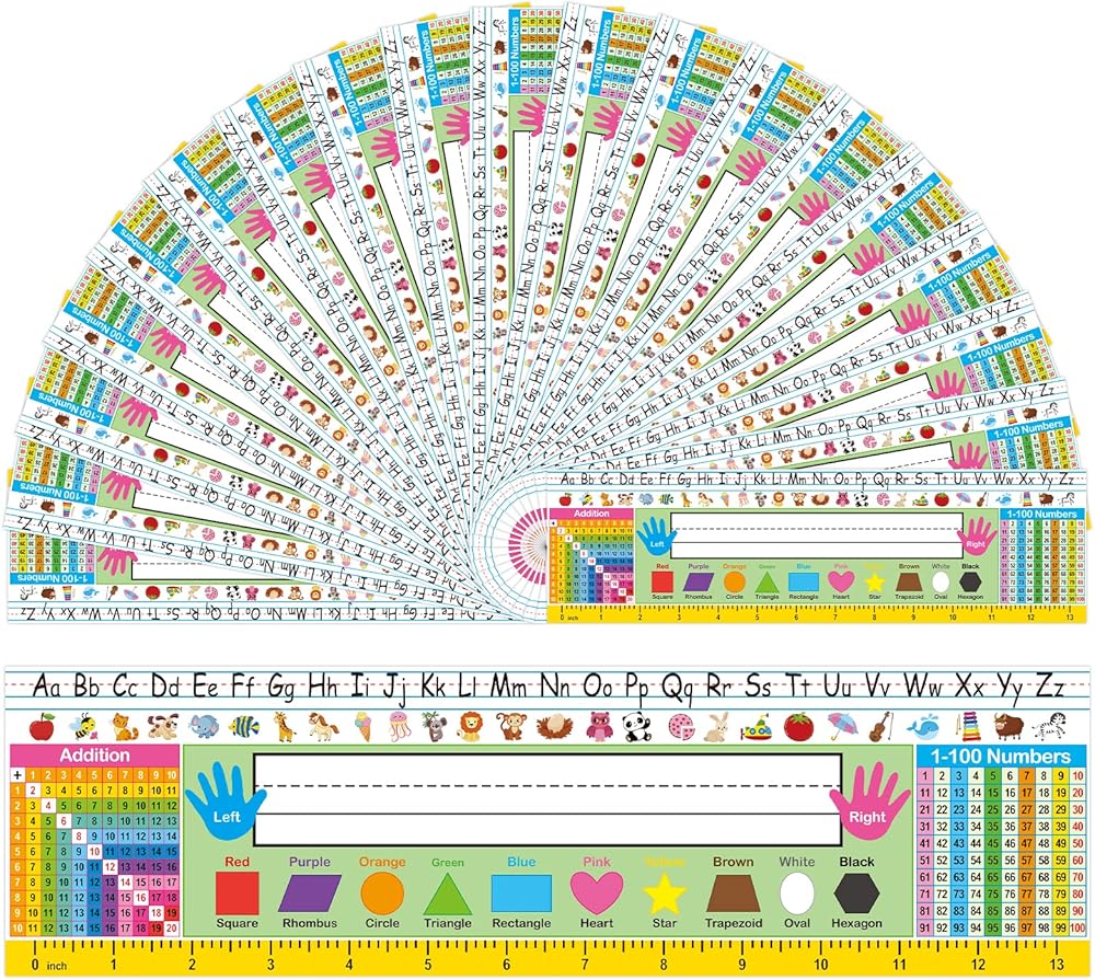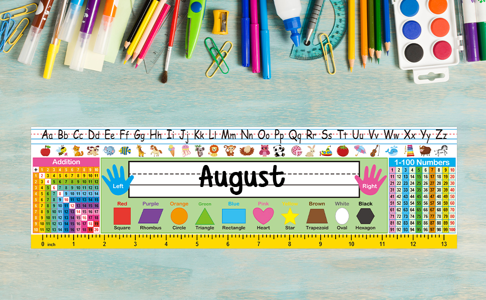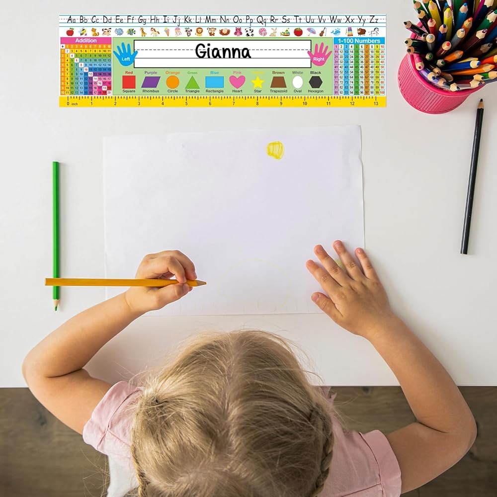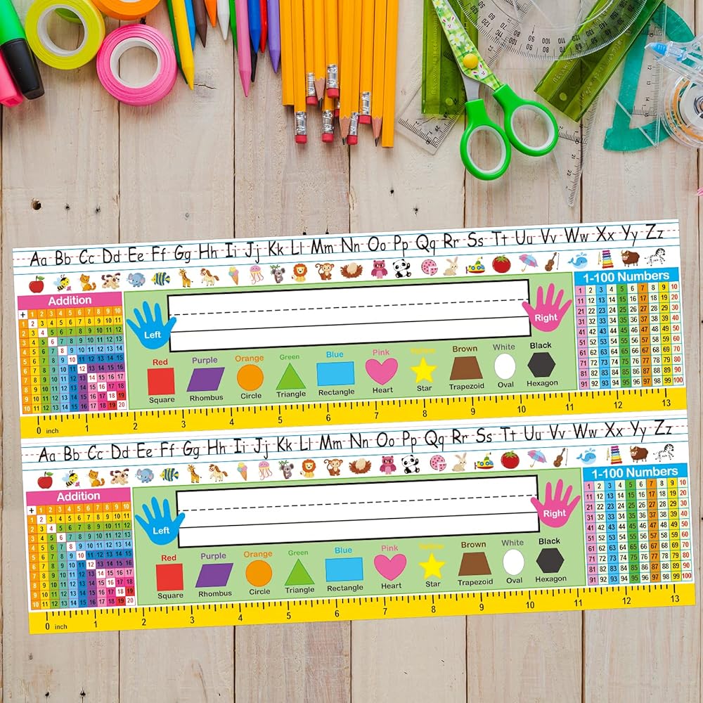 • تصميم مفيد - الكثير من الموارد للطلاب مباشرة في مكتبهم عندما يحتاجون مثل الأبجدية ، الإضافة ، الرسم البياني 100 والألوان والأشكال والمسطرة.