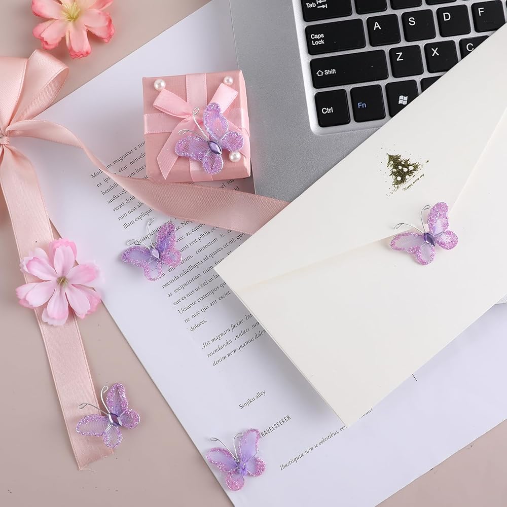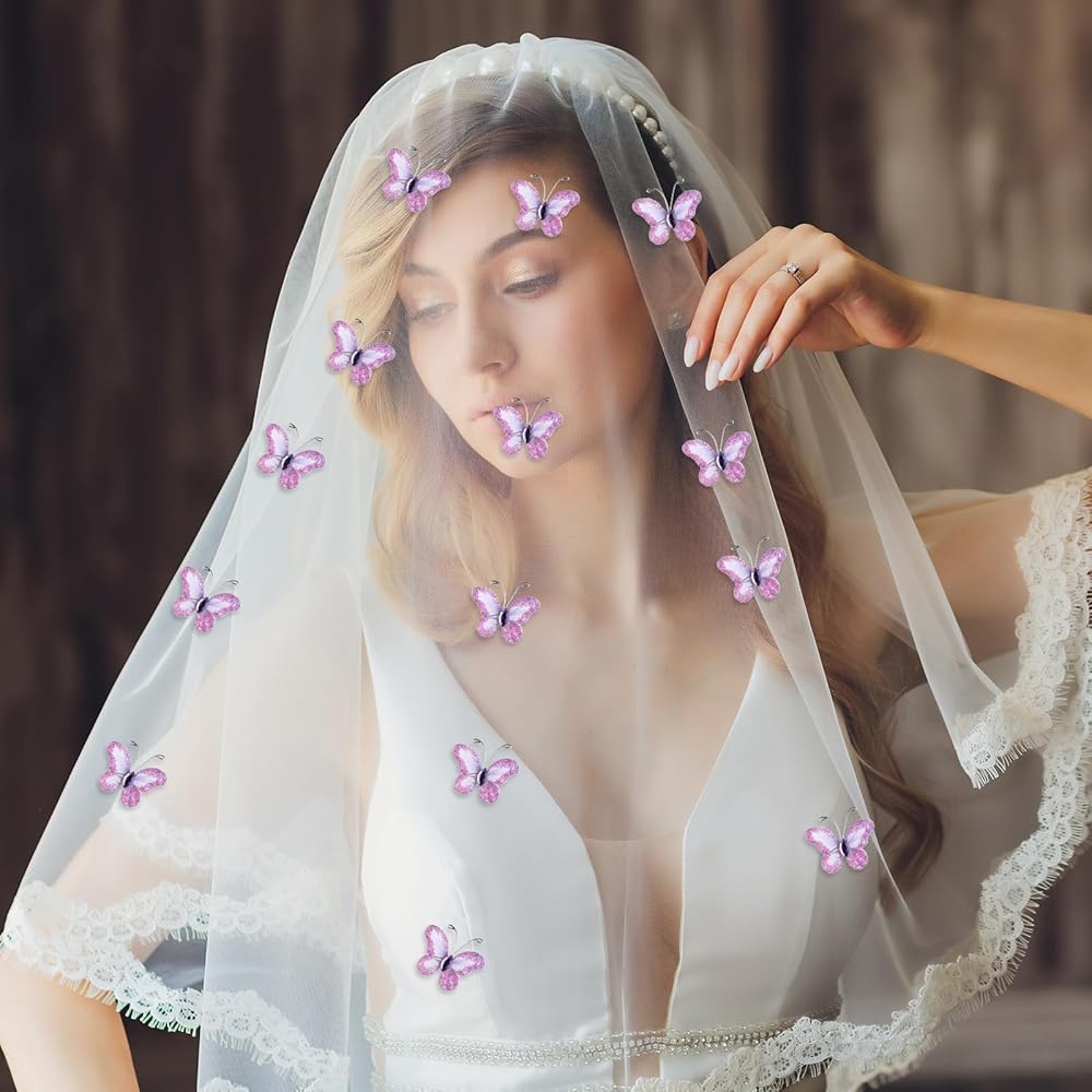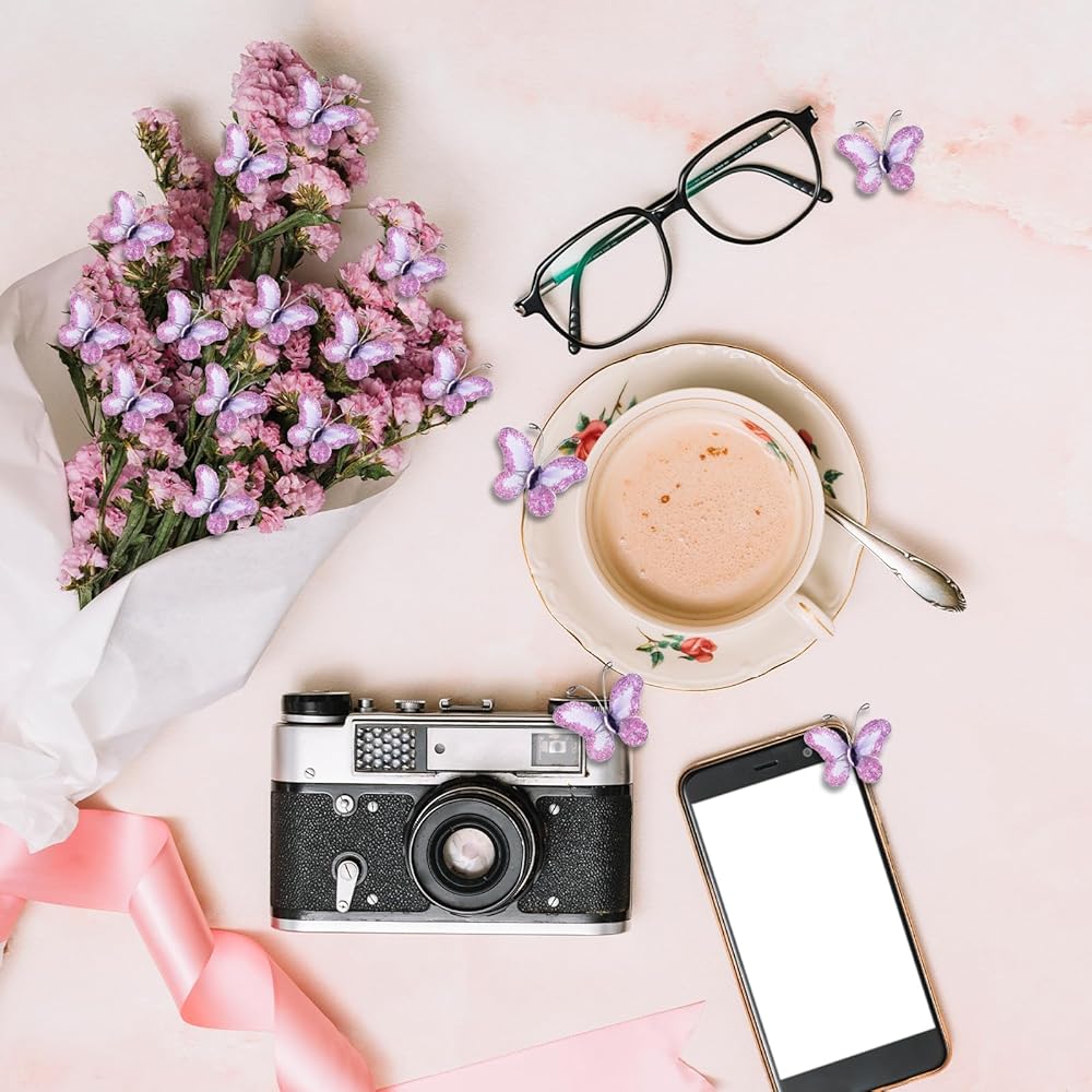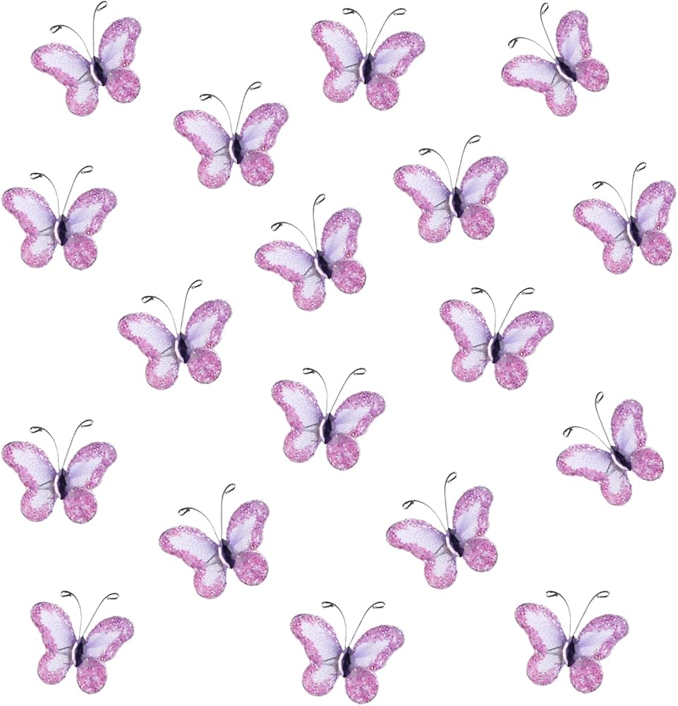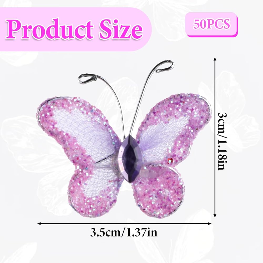 Package Contents: Each package includes 50 pieces of intricately designed sheer mesh wire glitter butterfly in a stunning purple hue. As displayed in the product images, you can easily match these butterflies to your specific theme or preference.
