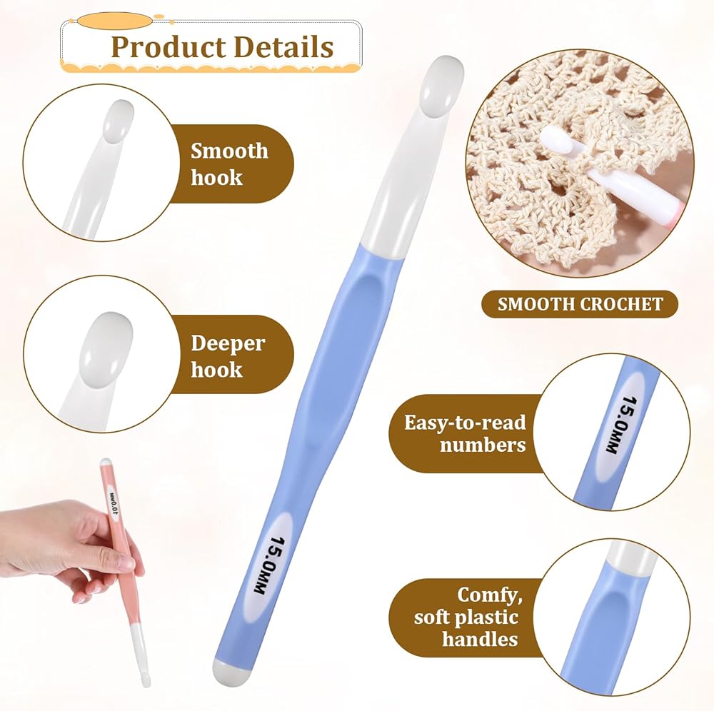 【Comfortable Grip】 The handle of this crochet hook is ergonomically designed to provide a comfortable grip and reduce pressure on your fingers and wrists. Enjoy long hours of crocheting without discomfort or fatigue.