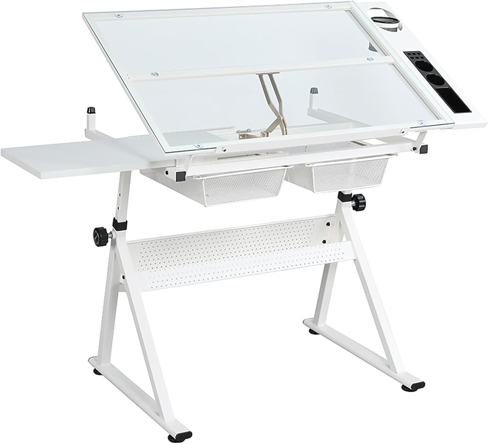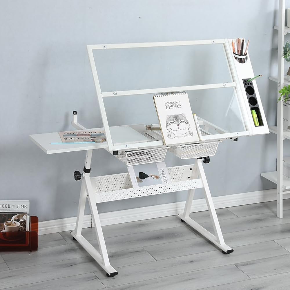 • STRONG CONSTRUCTION: The surface of the drafting table is made of high-quality, fully transparent glass. And supported by a powder-coated steel frame, giving it an elegant look. The overall support is composed of high quality steel, which can be used for a long time and is not easy to be damaged.