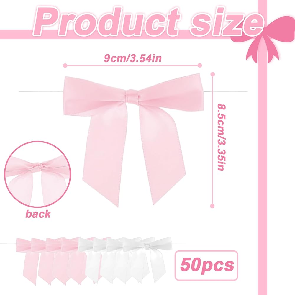 إمدادات واسعة: تتميز هذه الحزمة بنسبة 50 أقواس ساتان وردية وردية بيضاء ، مثالية لتعزيز الأحداث المختلفة مثل حفلات الزفاف والمعمودية والحفلات ذات الطابع. استخدمها لتزيين حقائب الهدايا أو أكياس الحلوى أو الأطعمة اللذيذة مثل الملوثات العضوية الثابتة للكعك والكعك