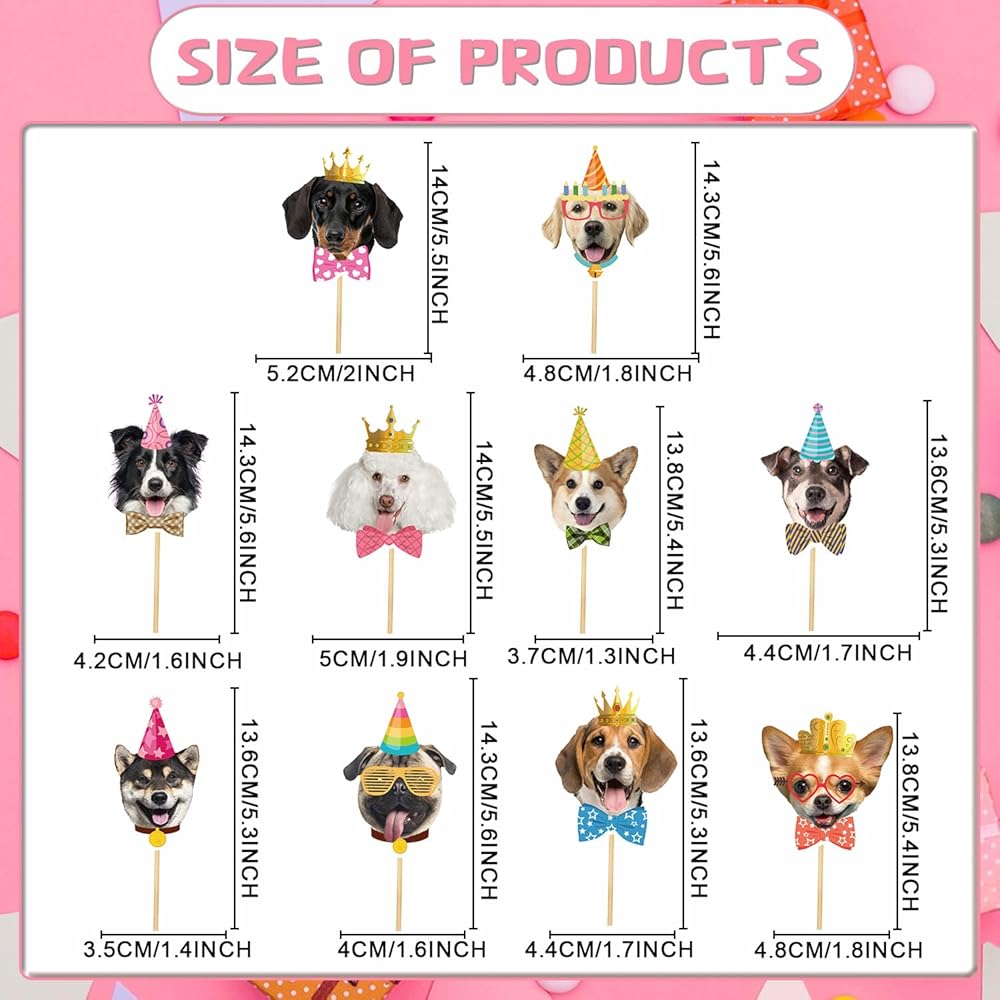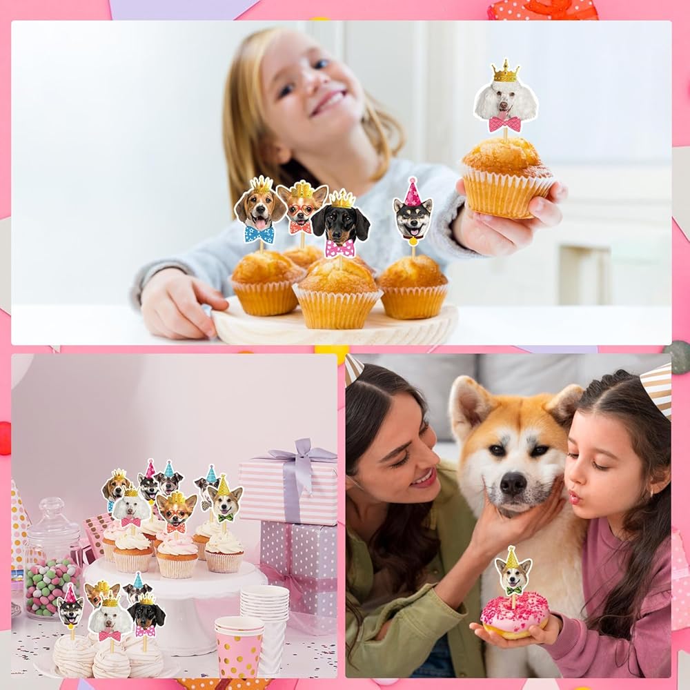 • تصميم الكلاب اللطيف: تصميم نمط الديكور كب كيك ممتع للغاية. هناك 10 وجوه مختلفة من الكلاب اللطيفة ، مقترنة بأقواس أو قبعات أعياد الميلاد أو التيجان لجعل الحفلة أكثر إثارة.