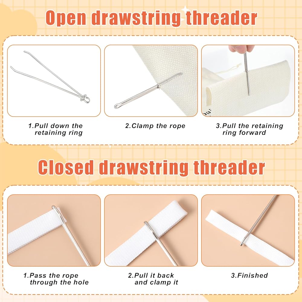 【Easy to Use】When you use it, you only need to put the drawstring on the opening of the pants waist tightener, fix it with a fixed ring, and then start threading. The drawstring for sweatpants needle threader is an effective assistant for your daily sewing work.