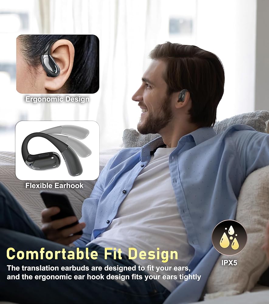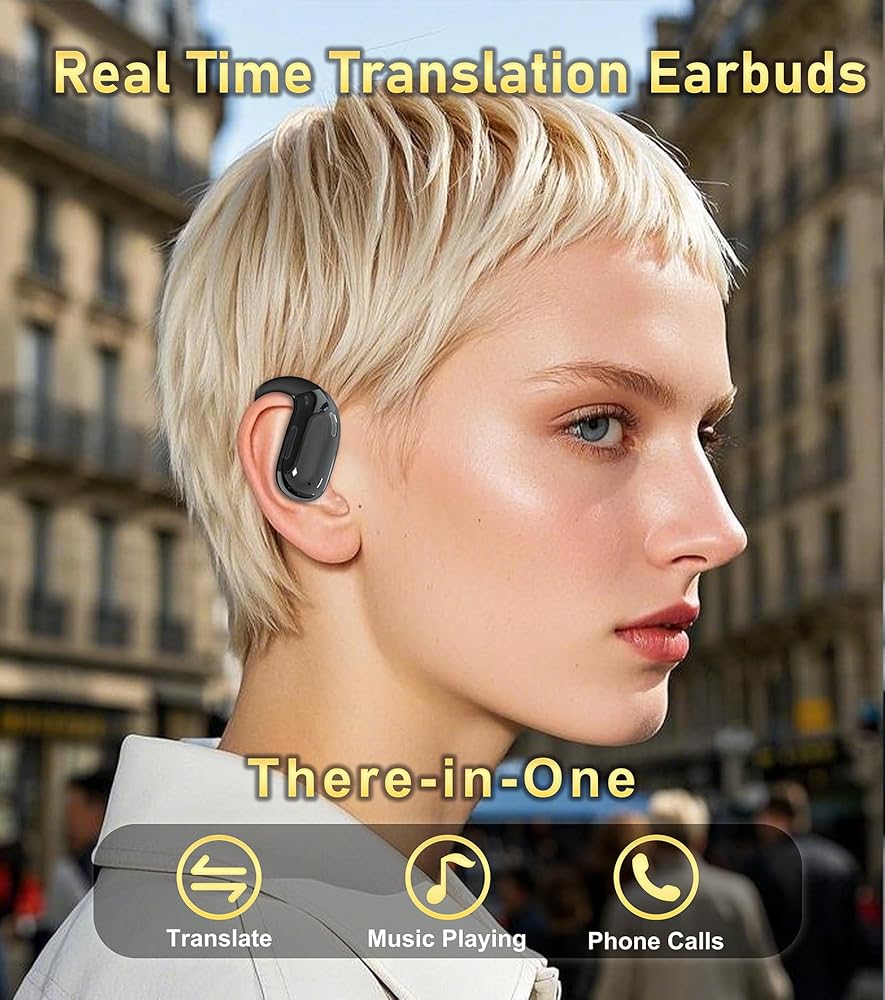 3-in-1 وظيفة: تجمع سماعات الأذن المفتوحة للترجمة بين الترجمة ، وتشغيل الموسيقى والمكالمات الهاتفية ، وتوفير التنوع والراحة للعمل/الحياة اليومية. توفر سماعات الأذن المترجمة صوت Hifi ومتوافق مع مساعدي الصوت مثل Siri.