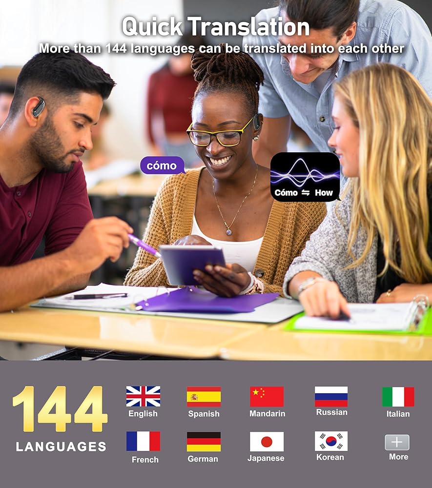 144 ترجمة اللغة: سماعات الأذن المترجم اللغوي المجهزة بتطبيق ترجمة مدعوم من الذكاء الاصطناعى ، تقدم ترجمة ثنائية الاتجاه في الوقت الفعلي بـ 144 لغة. تساعد سماعات الأذن لترجمة Bluetooth اللاسلكية على الفهم الفوري أثناء الرحلات أو المساعي الأكاديمية.