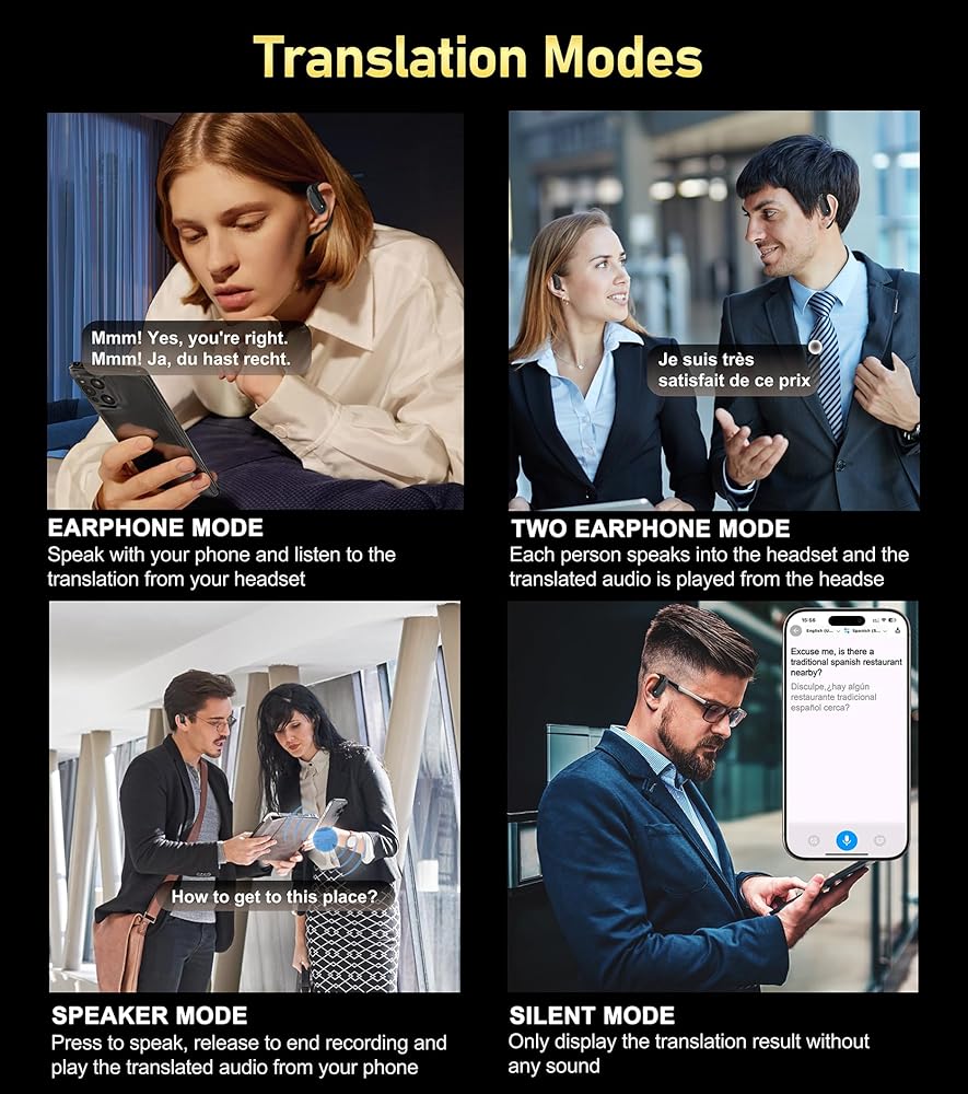 سماعات أذن ترجمة AI في الوقت الفعلي ، 3 في 1 OWS تترجمات الأذن ، 144 لغة ومترجم لهجات ، سماعات ترجمة ثنائية الاتجاه لنظام التشغيل iOS و Android ، مثالية لتعلم أعمال السفر