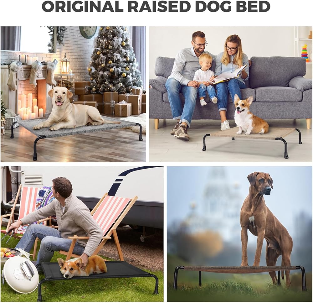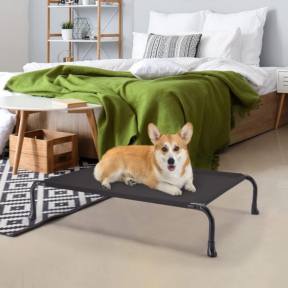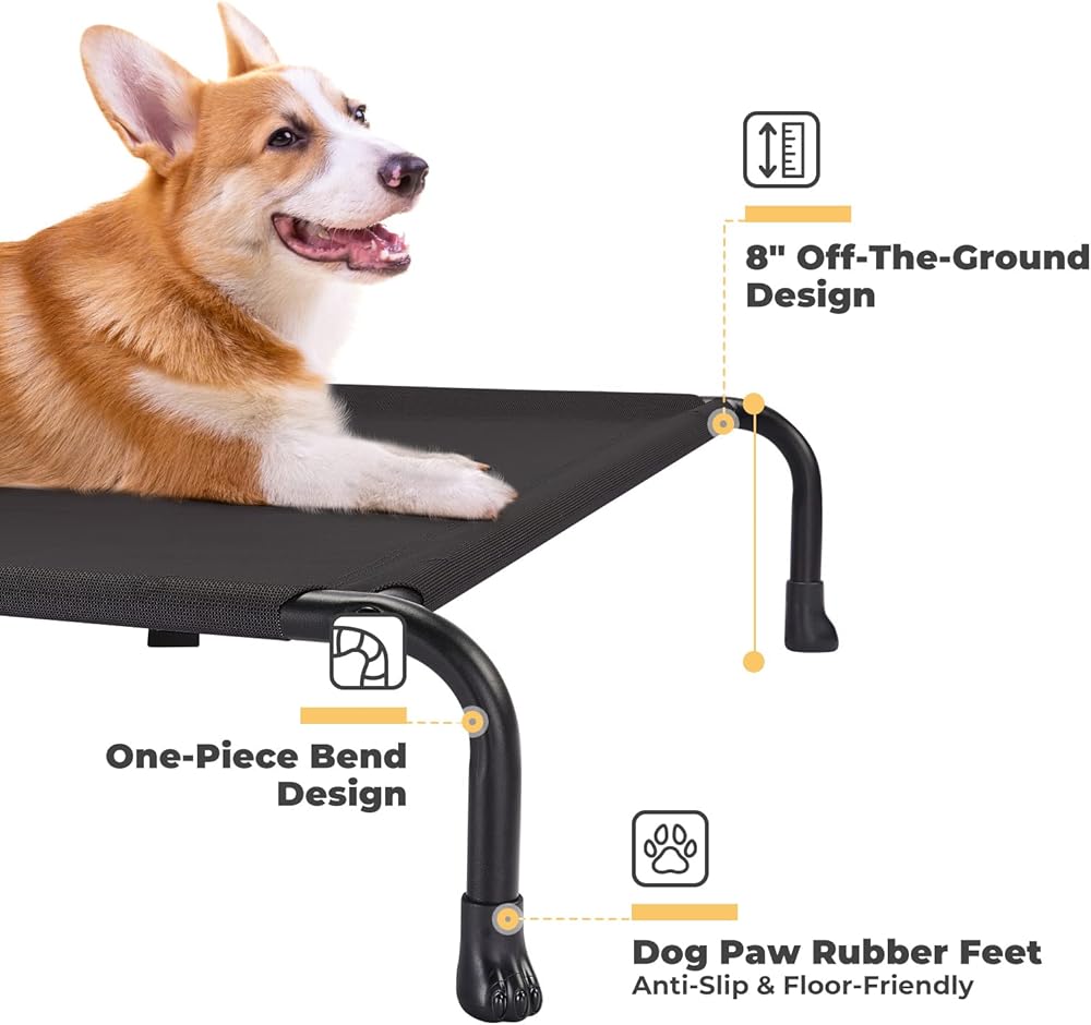 التبريد والراحة المرتفعة: موضعها 8 بوصات من الأرض ، هذا سرير الكلب المرتفع يعزز تدفق الهواء للحصول على سبات مريح ، أعلى بكثير من الأرضية الباردة الصلبة. ابق هادئًا في ذروة الصيف ودافئ في فصل الشتاء!