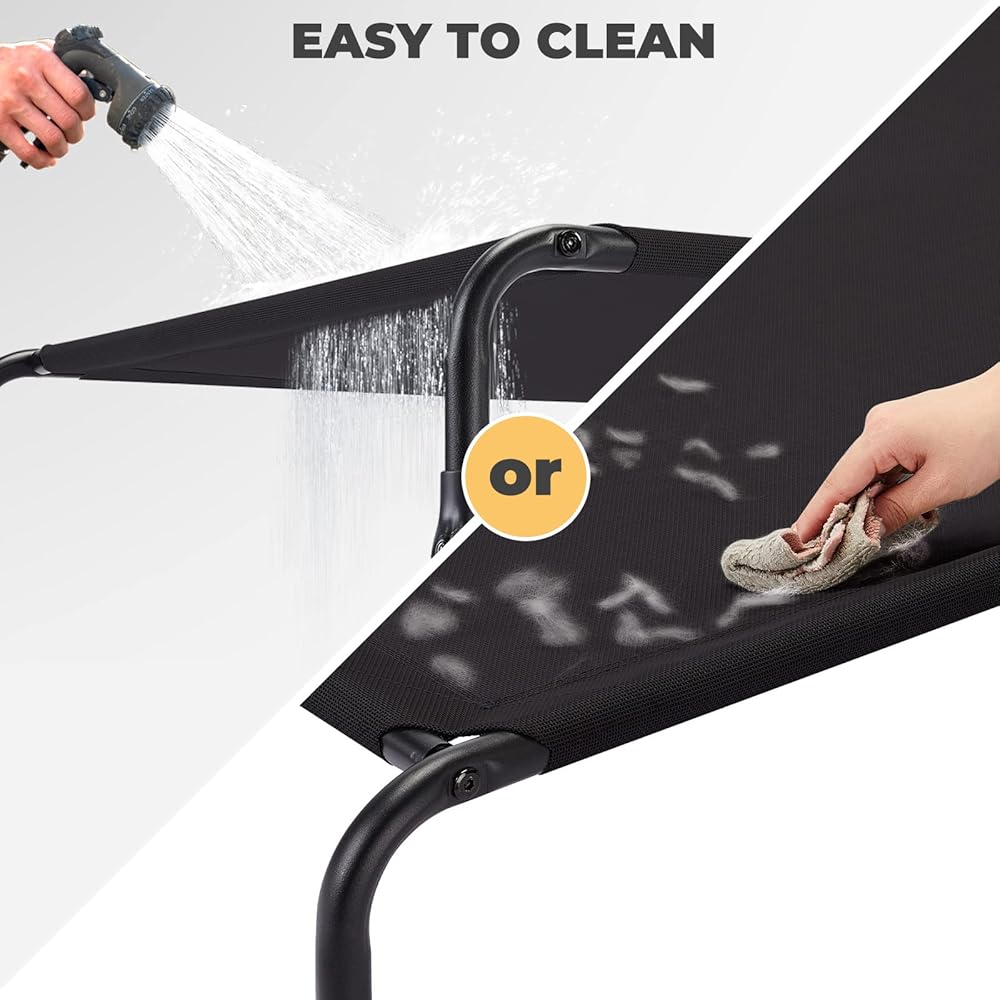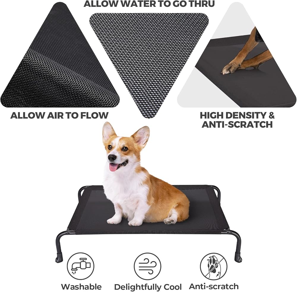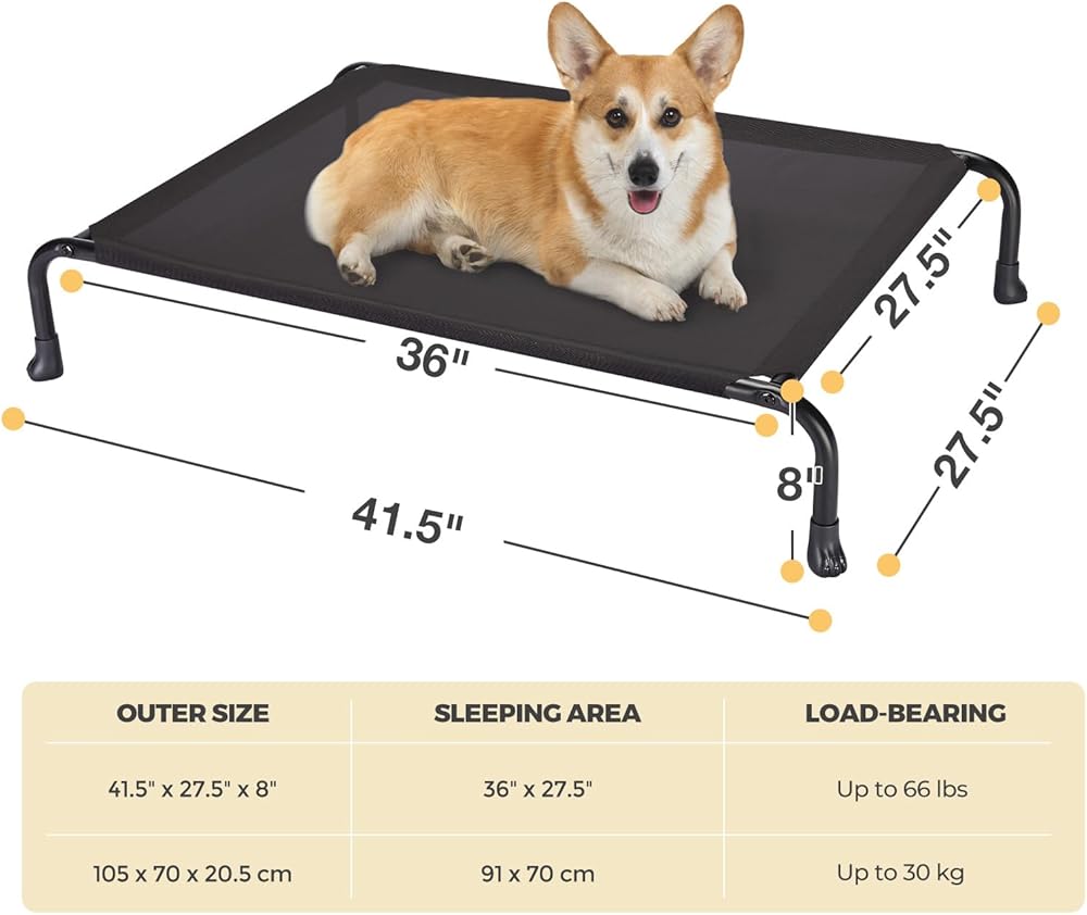 سرير الكلب المرتفع المرتفع في Veehoo ، أسرّة تبريد في الهواء الطلق للأسرّة للكلاب المتوسطة ، سرير أرجوحة للحيوانات الأليفة مع أقدام بدون انزلاق ، إطار مع شبكة مقبولة ومضغ في الهواء الطلق ، متوسطة ، أسود ، أسود