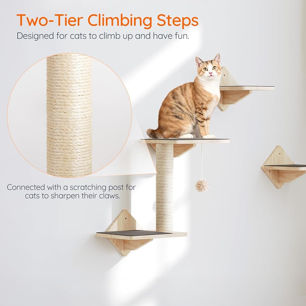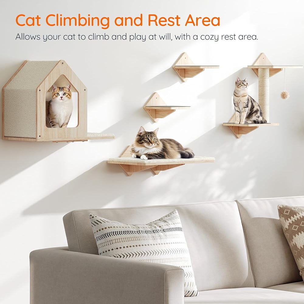 • رضا نمط الحياة الشامل للقطط: تتضمن مجموعة رف الجدار القط منصة كبيرة للتمدد ، وبيت قط مع تظليل ناعم للخصوصية ، وخطوتين للاستكشاف ، ودرج مع منشور خدش لتسلق المرح ورعاية المخلب
