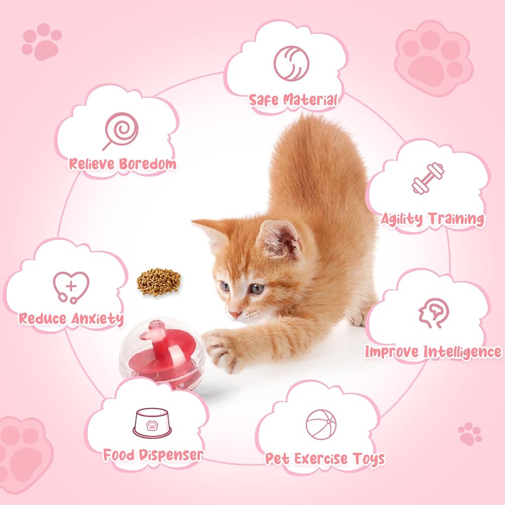 【التحكم في الوزن】 Cat Treat Dispenser Ball Dissing أجزاء صغيرة من الطعام يوميًا لمساعدتك على التحكم في وزن قطتك ، جنبًا إلى جنب مع التمرين ، يجب أن تعمل قطتك من أجل الطعام.