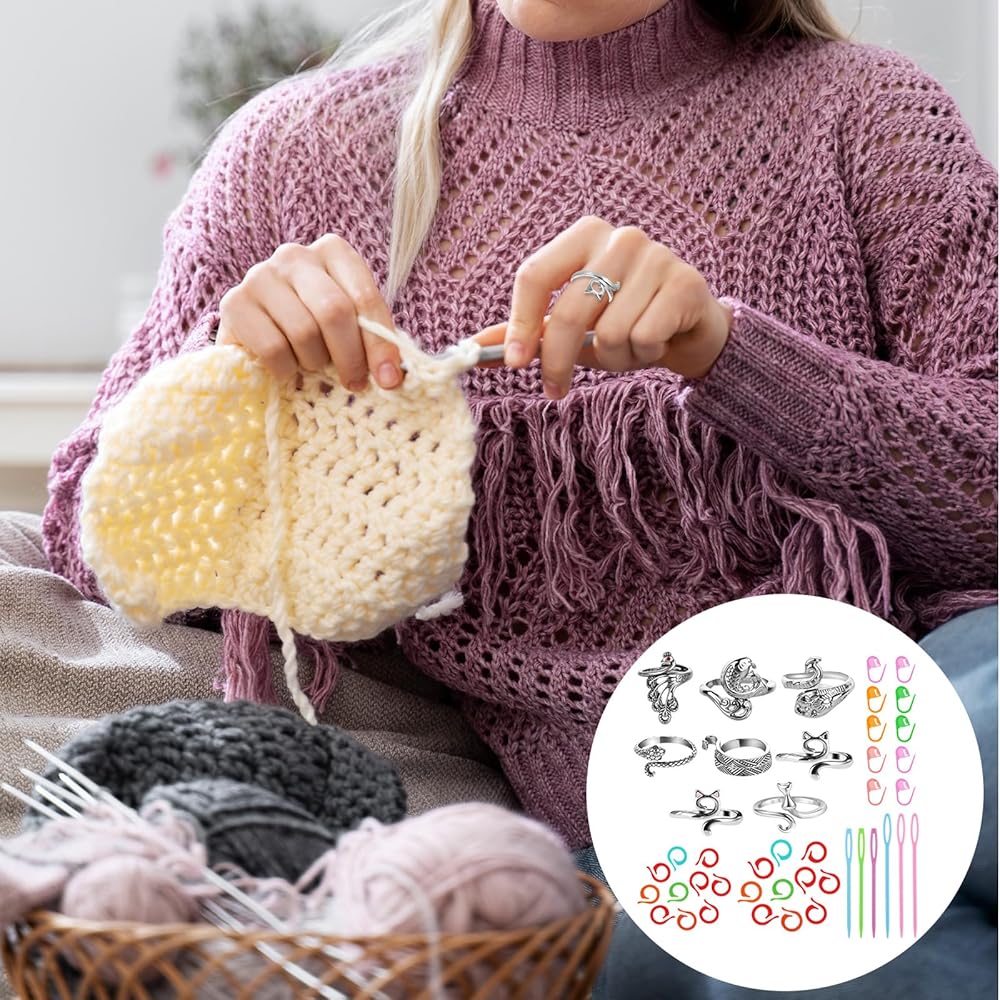 【Quality and Durability】Our adjustable knit tension rings are made of a durable zinc alloy, demonstrating nice craftsmanship. These rings are resistant to corrosion and rust, protecting your fingers while increasing weaving speed and ensuring accessories are durable.