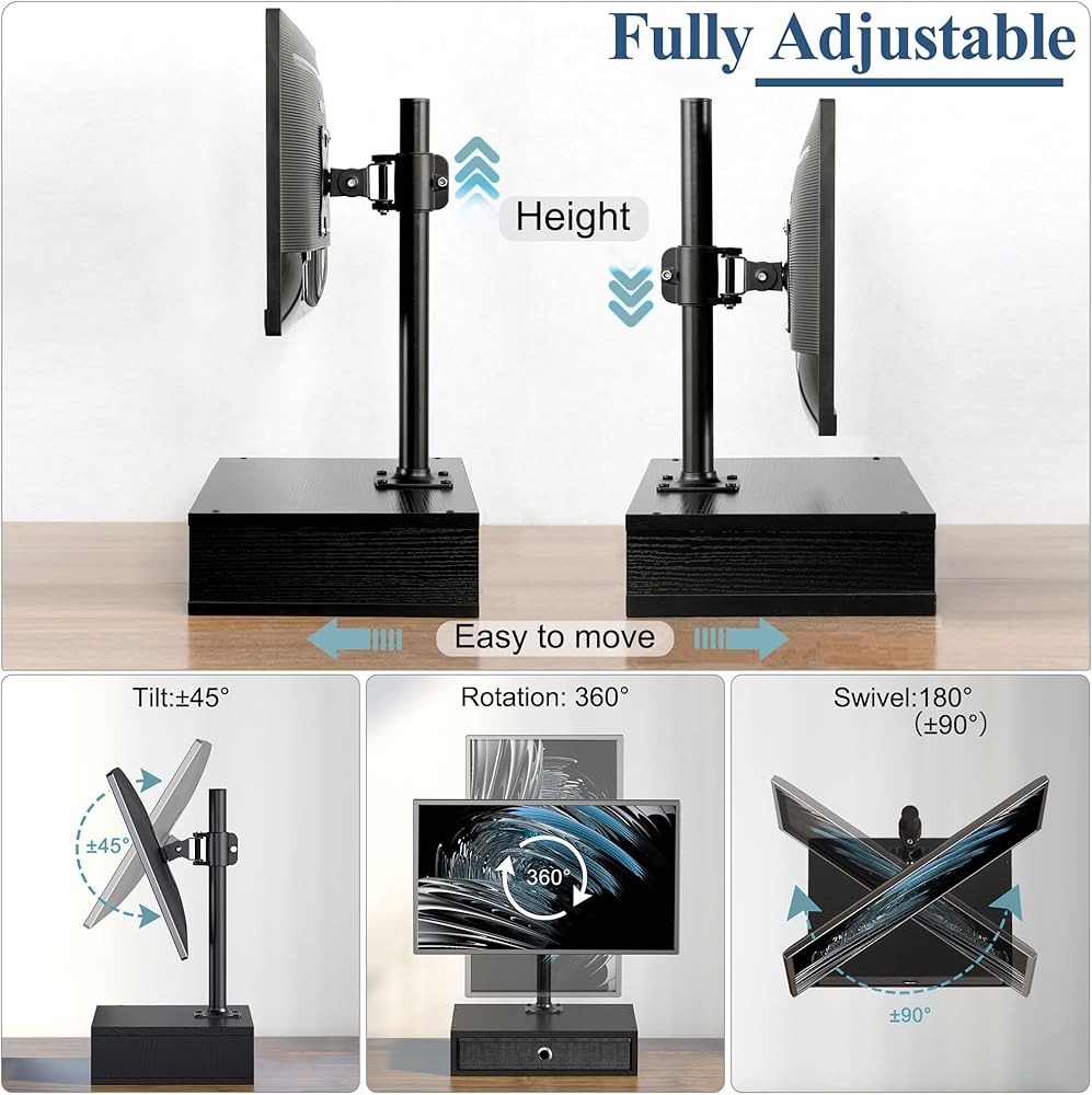 • متين وآمن: منصة شاشة VESA هذه مصنوعة من الصلب الثقيل وقاعدة خشبية عالية الجودة لمنع التذبذب أو التذبذب ، مما يضمن دعمًا موثوقًا لراقبتك.