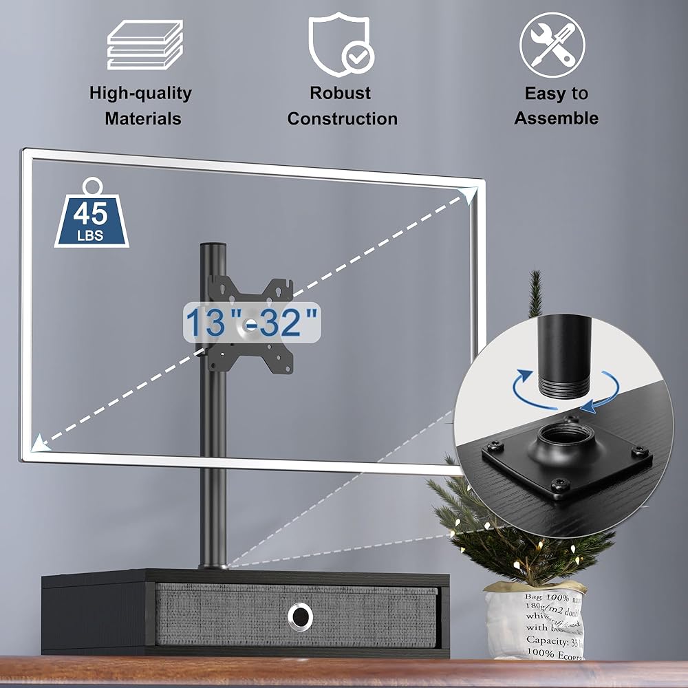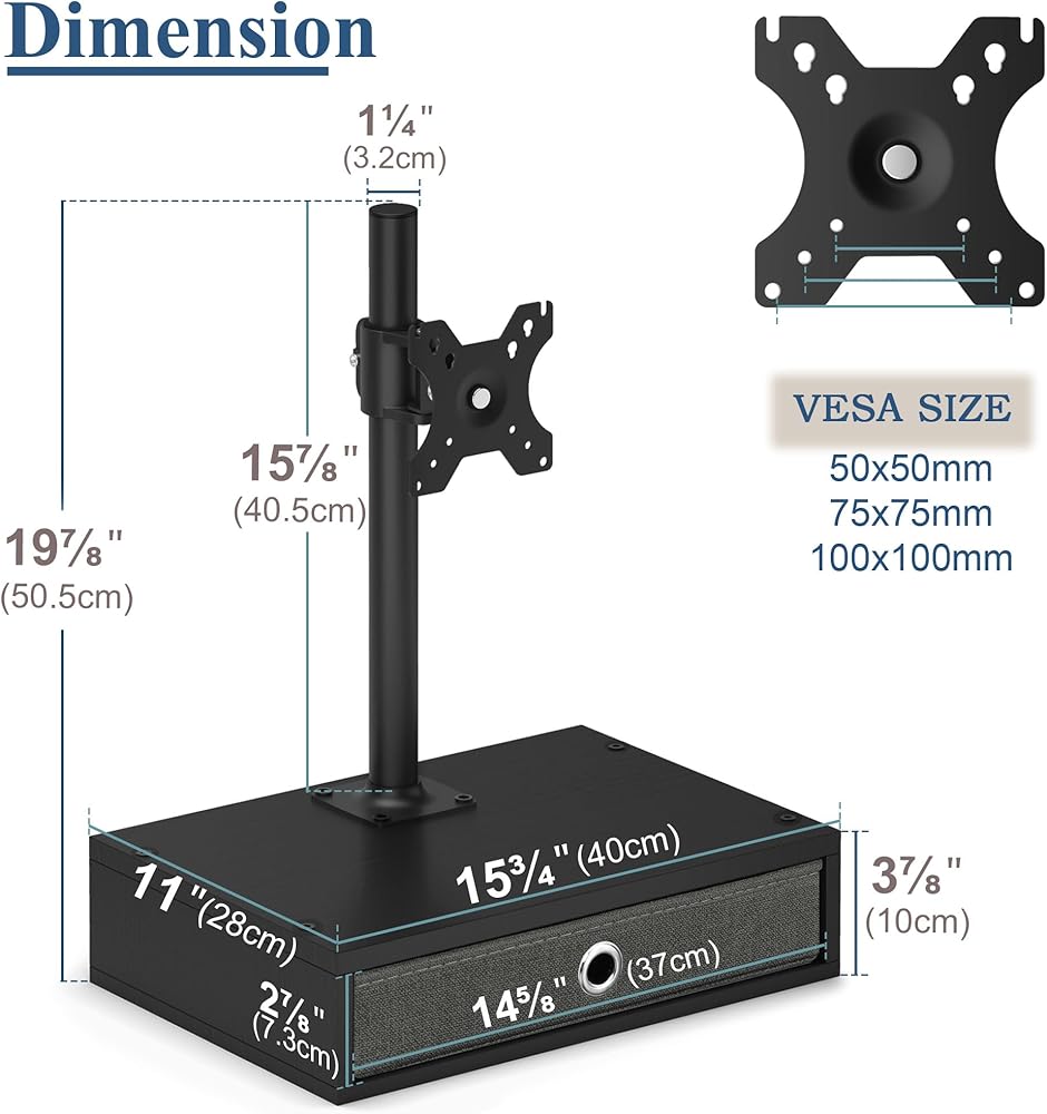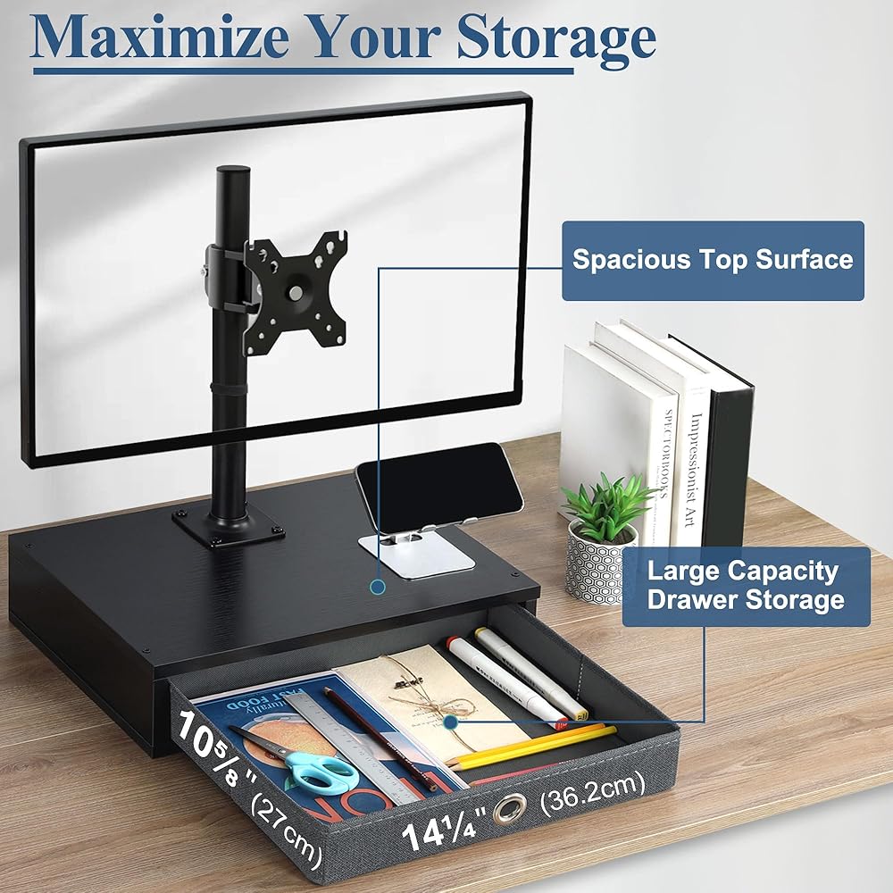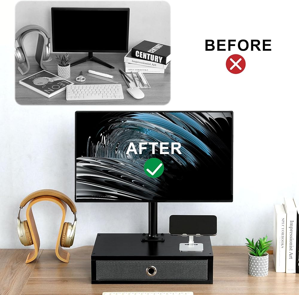 Teamix Monitor Stand Riser مع درج ، ومكتبي قائم بذاته ، وموقف تلفزيوني صغير ، يناسب 13 "-32" ، ارتفاع قابل للتعديل ، دوار ، إمالة ، دوران ، VESA 75x75 ، 100x100mm