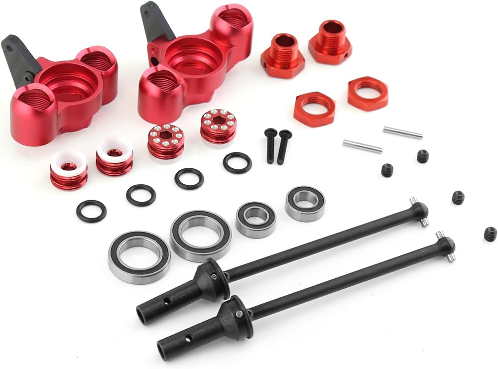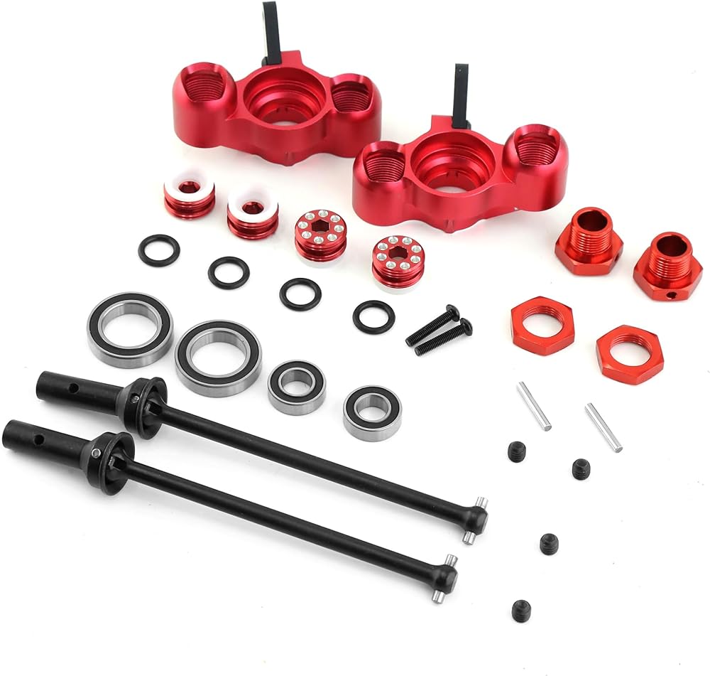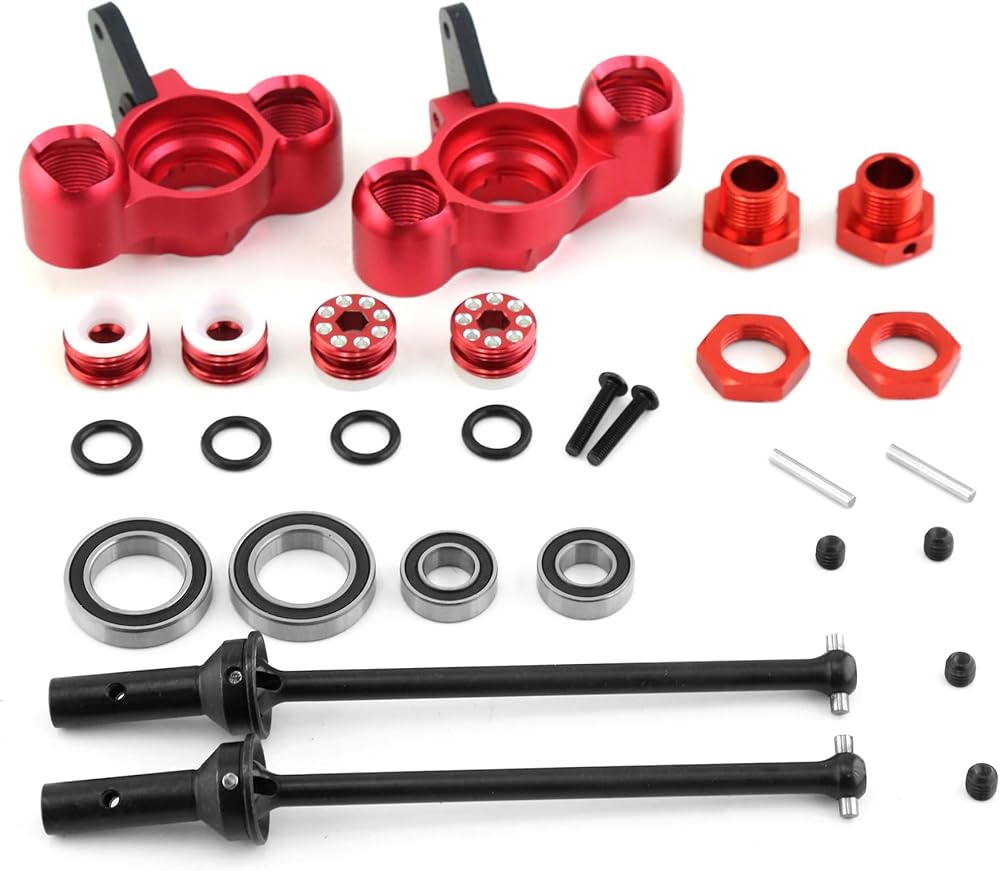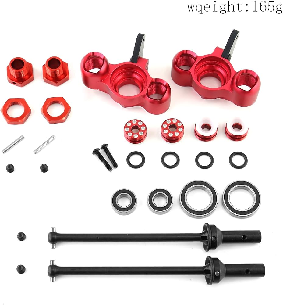 These are steering hub carrier, wheel hex and nut, front CVD drive shaft upgrade parts;
