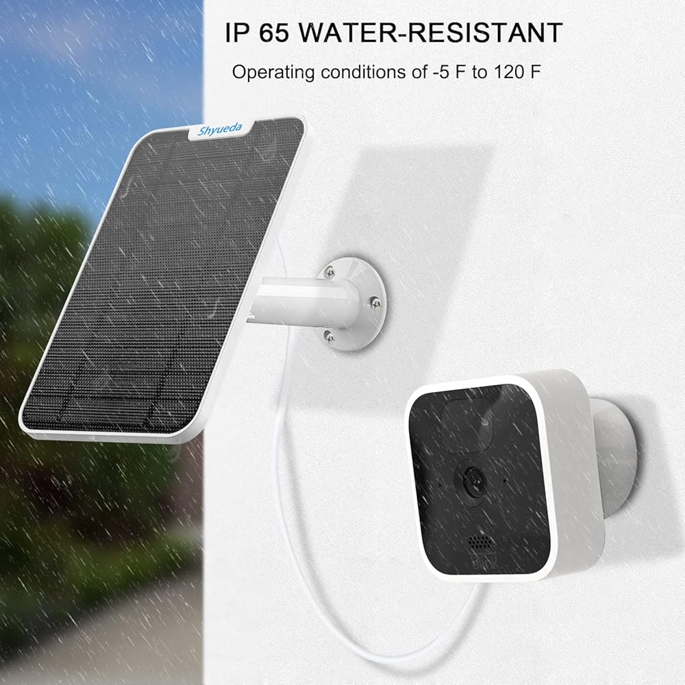 يمكن لهذه اللوحة الشمسية للكاميرا المنزلية أن تتحمل الثلوج والعواصف والأمطار وغيرها من الظروف الجوية القاسية. مواد مقاومة للطقس مما يجعلها مثالية لاستخدام الكاميرا الخارجية.. الظروف: 32 درجة فهرنهايت إلى 120 درجة فهرنهايت (0 درجة مئوية إلى 48 درجة مئوية)، لا تقلق من تأثير الميزات الأخرى.